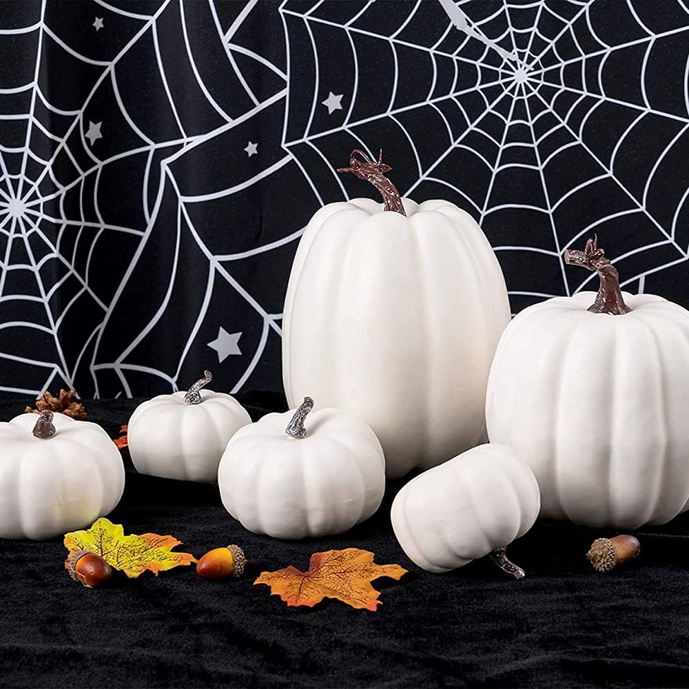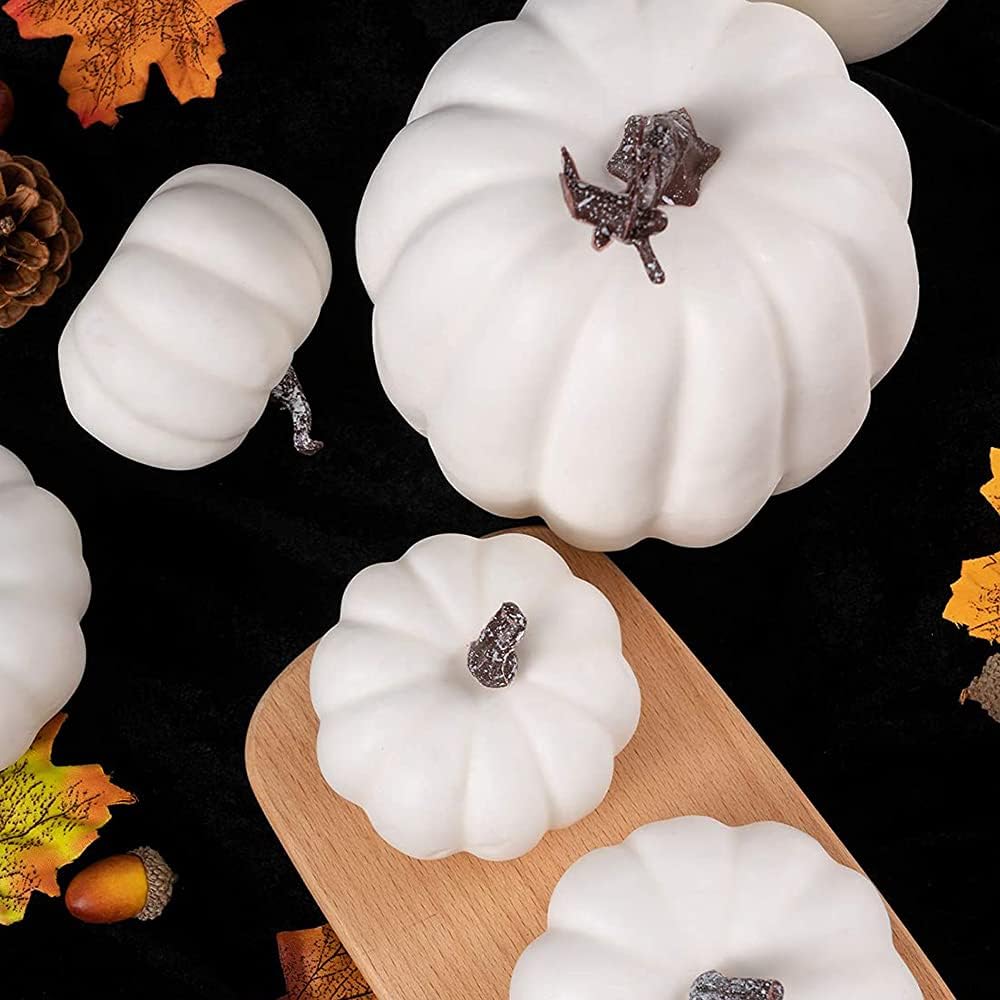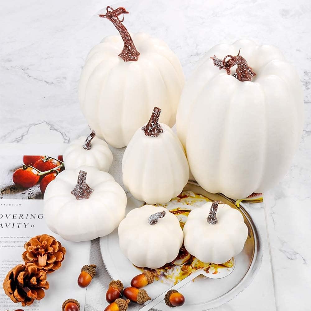 7 броя изкуствени тикви за Хелоуин в различни размери и форми, подходящи за Хелоуин, Деня на благодарността, есенна реколта, ще бъдат чудесно допълнение към вашата есенна презентация.