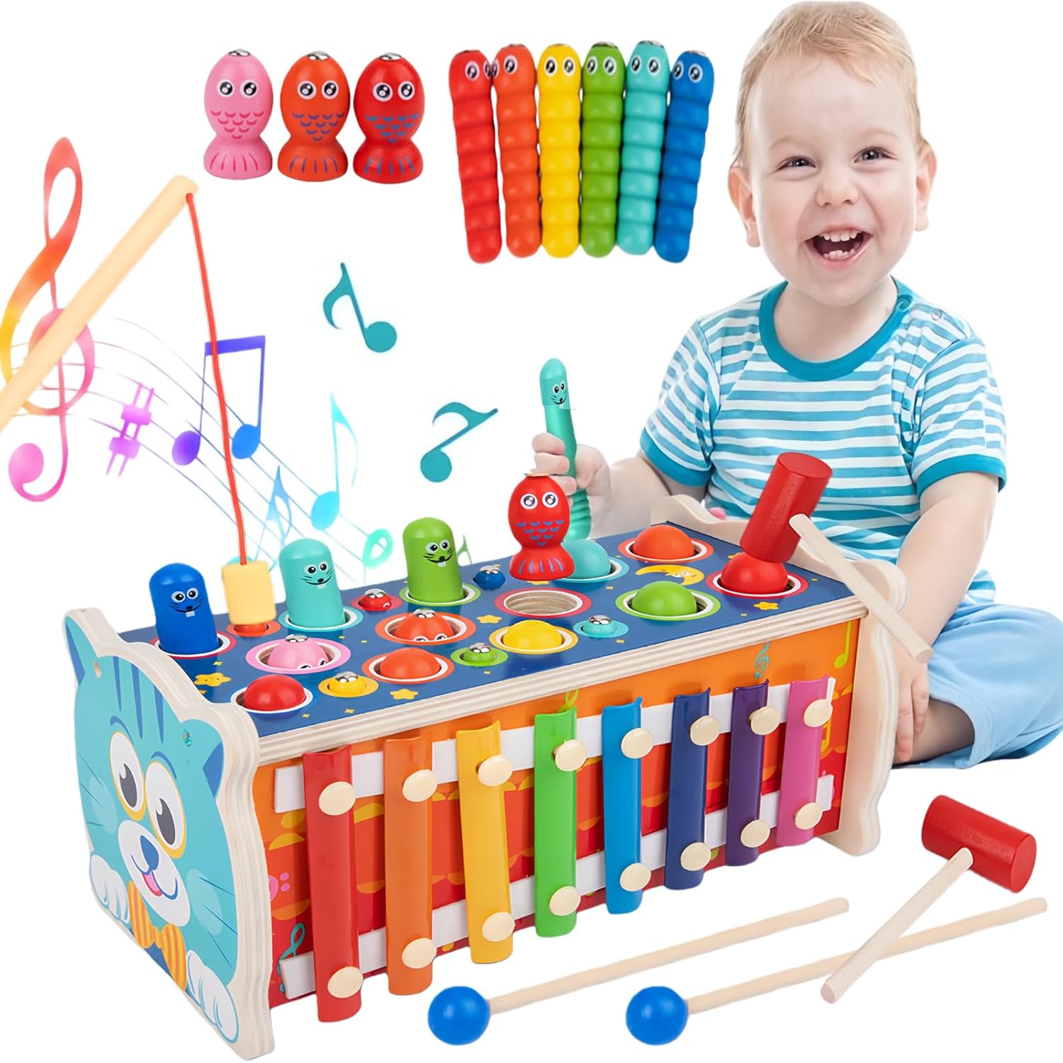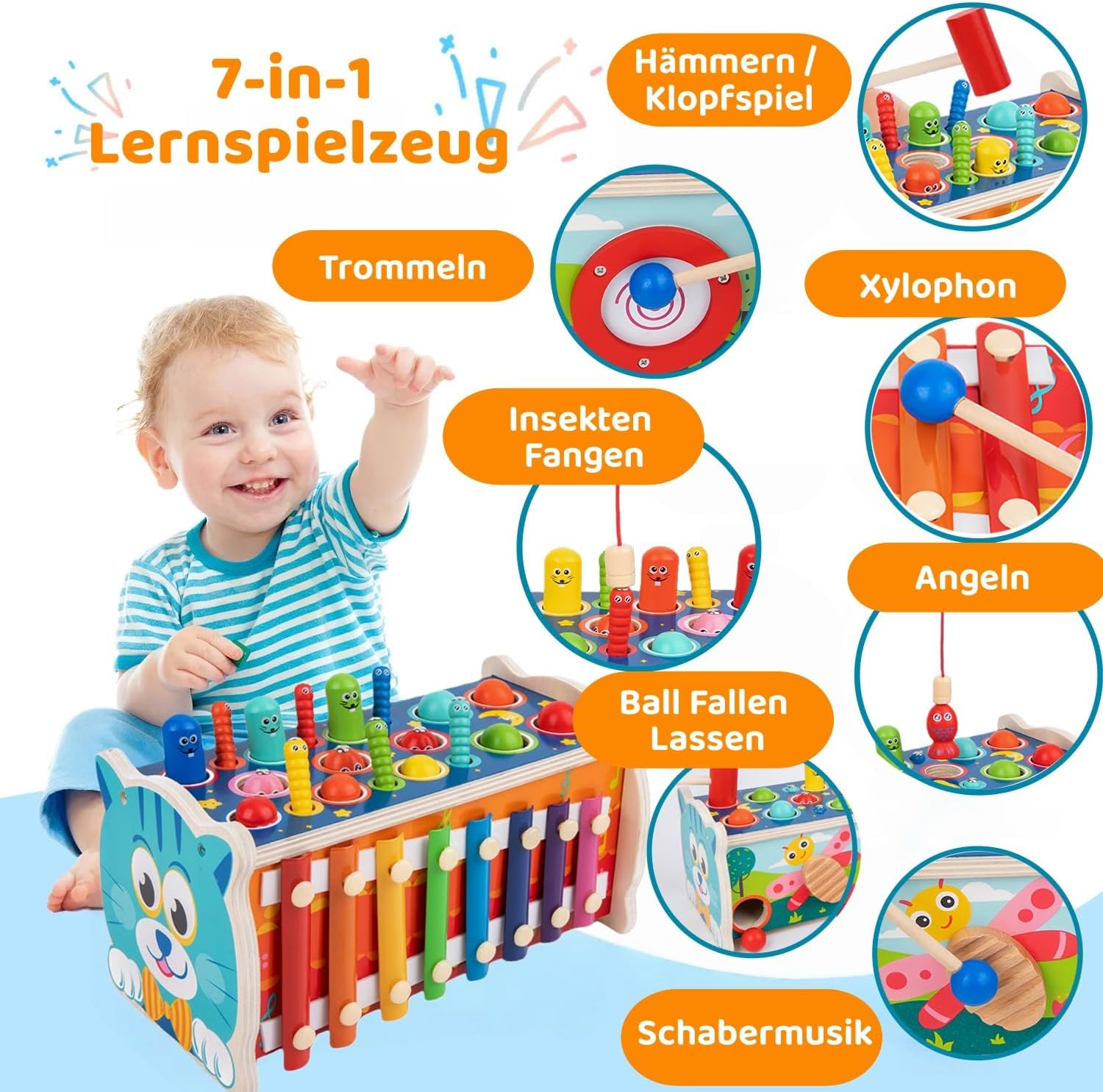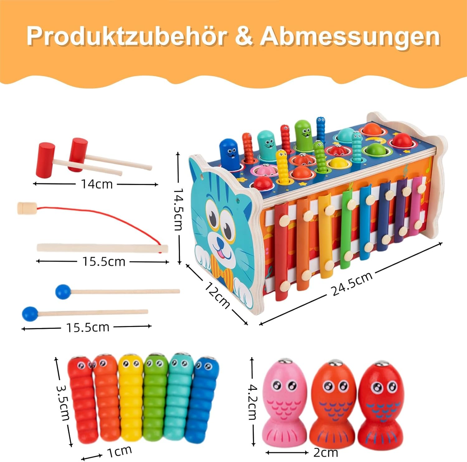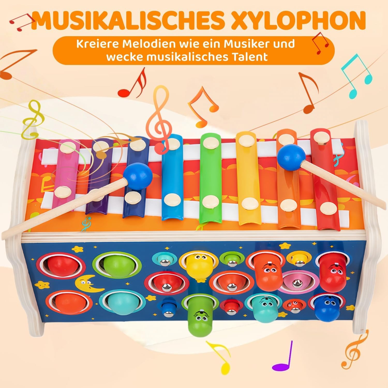 Mit diesem farbenfrohen Klangspiel entdecken Kinder spielerisch die Welt der Musik. Der Schlägel lädt zum Anschlagen der Klangstäbe ein, fördert die Sinne und weckt die musikalische Begabung – ideal für erste rhythmische Erfahrungen und konzentriertes, freudiges Spielen.