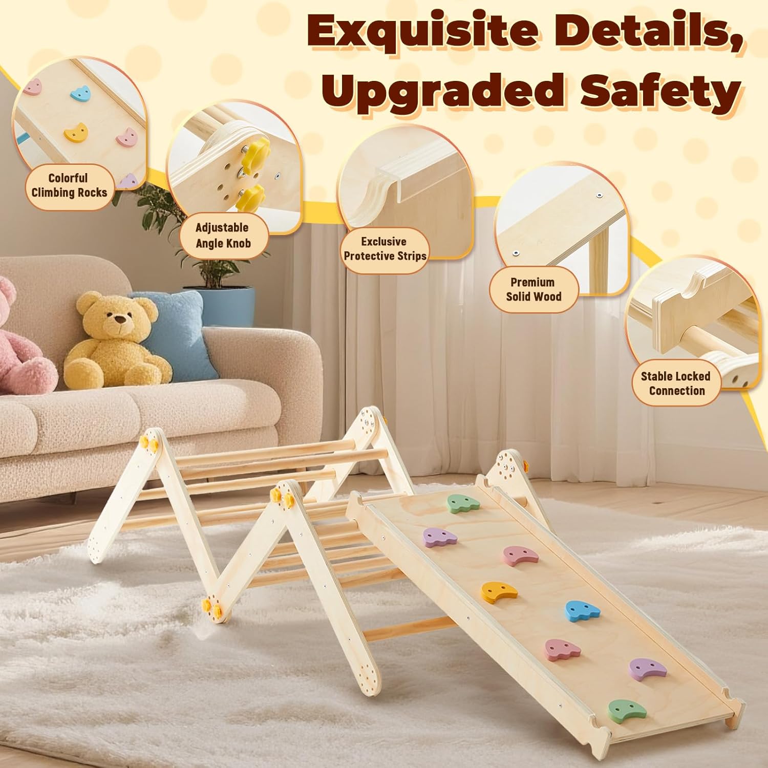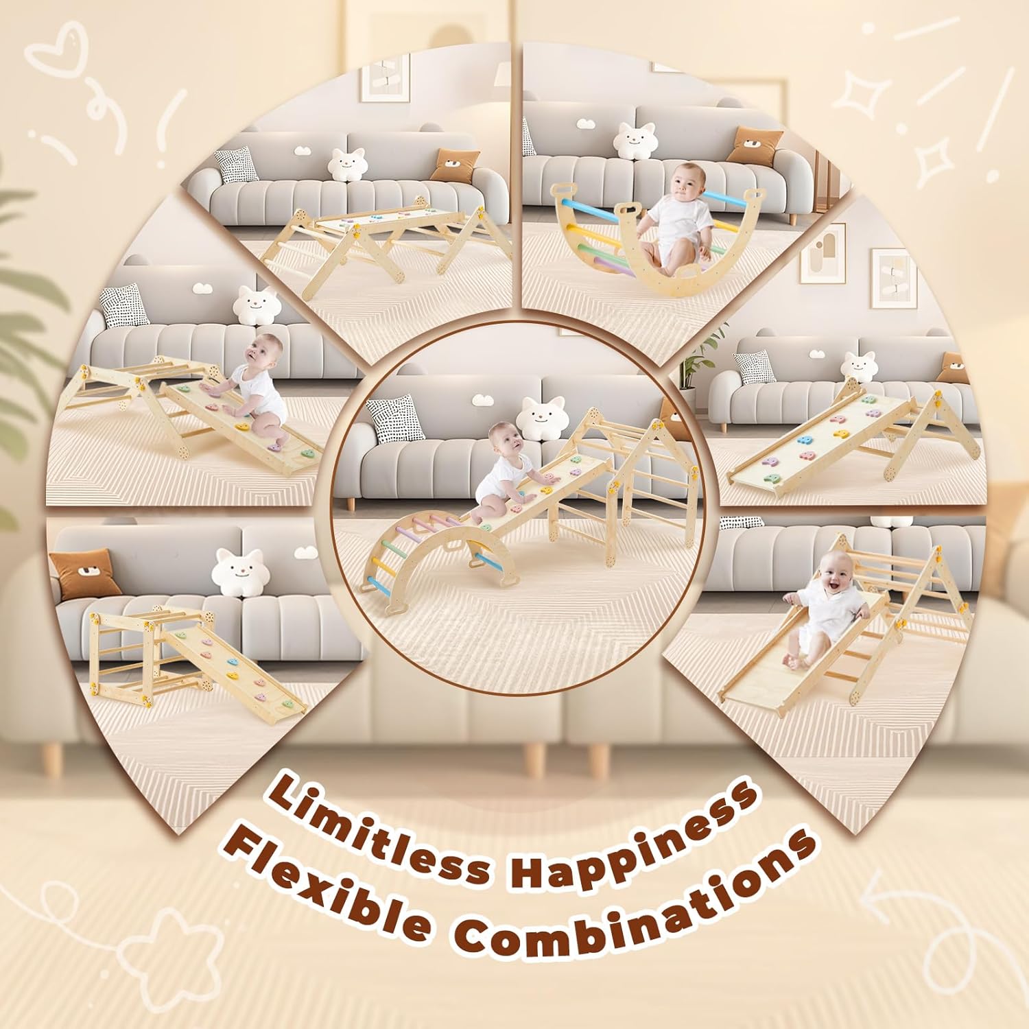 Im Gegensatz zu anderen Produkten besitzt unser Kletterdreieck 4 Leitern und 6 abnehmbare Knöpfe, die eine hohe Stabilität und Flexibilität garantieren. Das kreative Design ermöglicht es, verschiedene Formen zu kreieren, um den Bedürfnissen unterschiedlicher Altersgruppen und Interessen zu erfüllen.