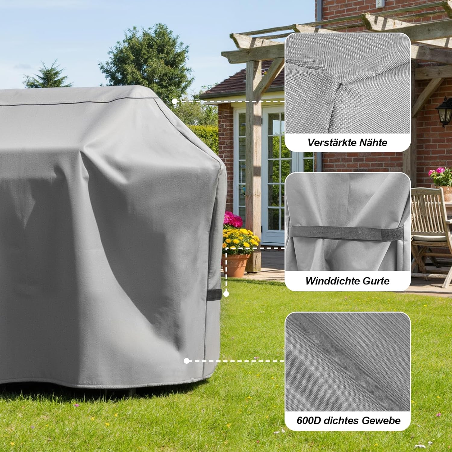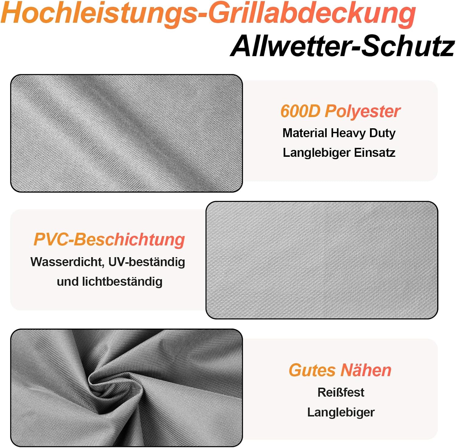 • 【ВОДОУСТОЙЧИВ】Калъфът за грил 7150 е изработен от издръжлива, специална 600D полиестерна оксфордска материя с водоустойчиво PVC покритие, което го прави устойчив на разкъсване. Двойните шевове са обработени със специална уплътнителна лента, така че не е нужно да се притеснявате за протичане на вода през шевовете. Издържа на силен дъжд, слънчева светлина и сняг. Калъфът за грил ефективно покрива грила ви и го предпазва от суровите атмосферни влияния.