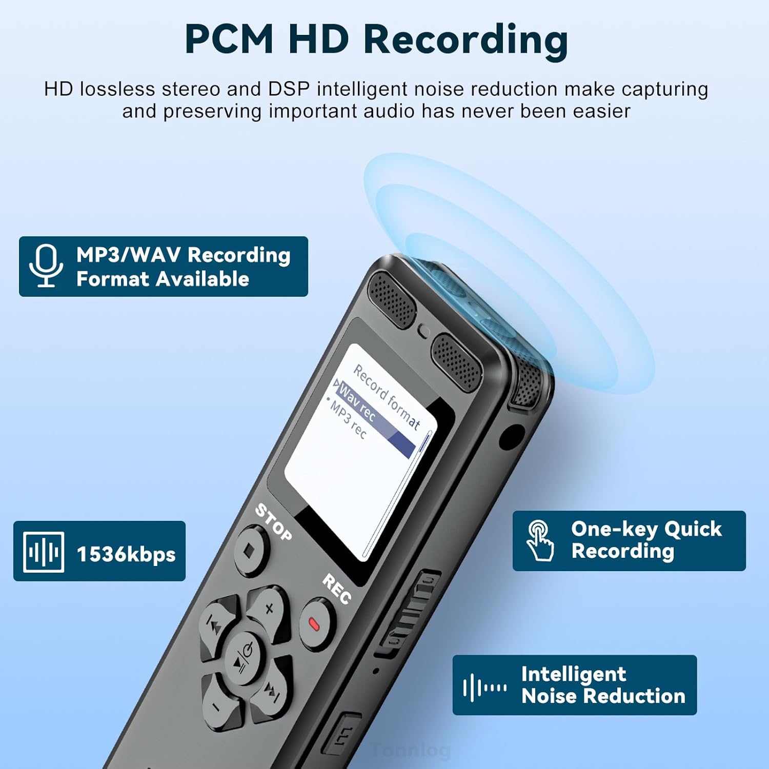 Tonnlog digital voice recorder, an indispensable tool for many occasions, suitable for students, teachers, journalists, lawyers and businessmen. Whether you are in a conference room, classroom, lecture or on a private trip, with one click you can quickly start recording and meet your different recording needs