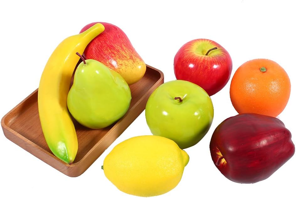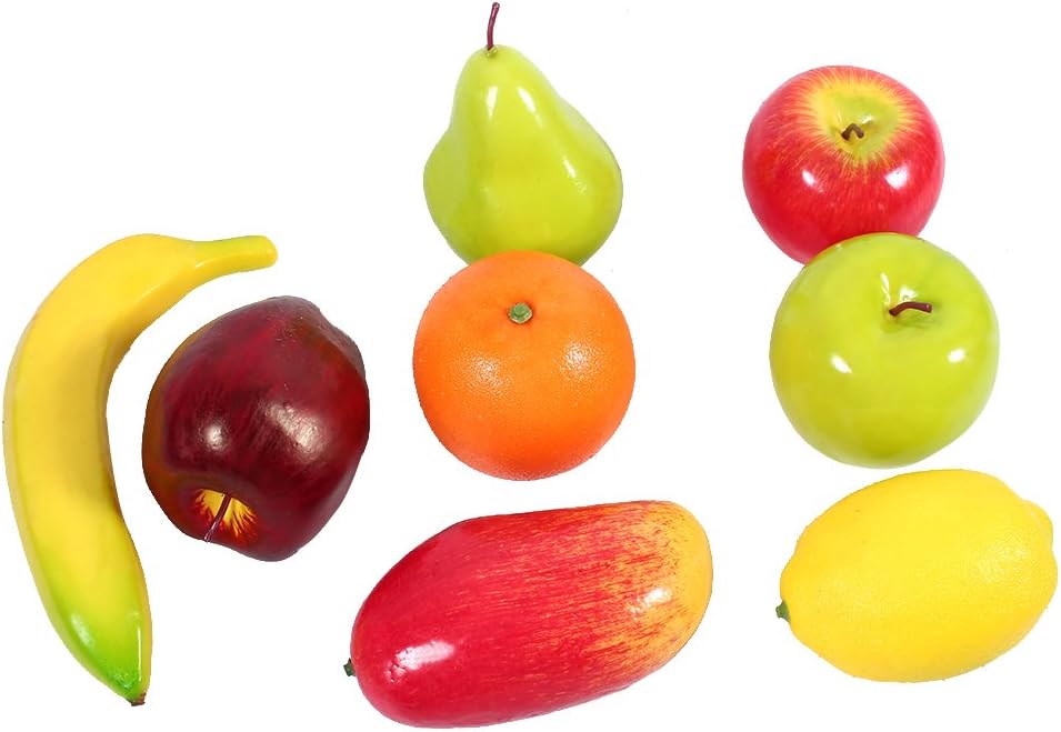 . 5. ПАКЕТЪТ ВКЛЮЧВА 1 x Банан, 1 x Червена вкусна грозде, 1 x Круша, 1 x Портокал, 1 x Манго, 1 x Червена ябълка, 1 x Зелена ябълка, 1 x Лимон (Общо 8 броя изкуствени плодове)
