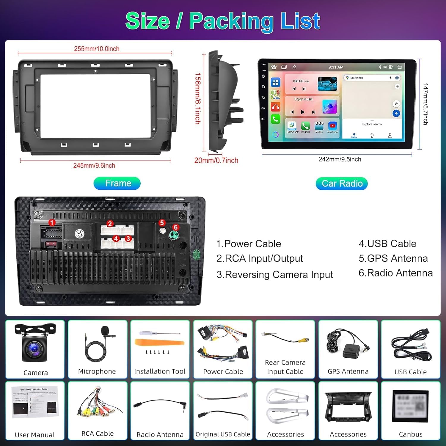 • Развлечение и практичност с вграден DSP, GPS и FM/RDS радио: автомобилното радио Carplay за Peugeot 208 2012-2018 предлага първокласно качество на звука с 32 вградени EQ-DSP настройки, които настройват звука според вашите предпочитания. Навигирайте безопасно с GPS навигационната система и бъдете информирани с FM/RDS радиото, което прави това устройство цялостен център за забавление и снабдяване за вашия автомобил.