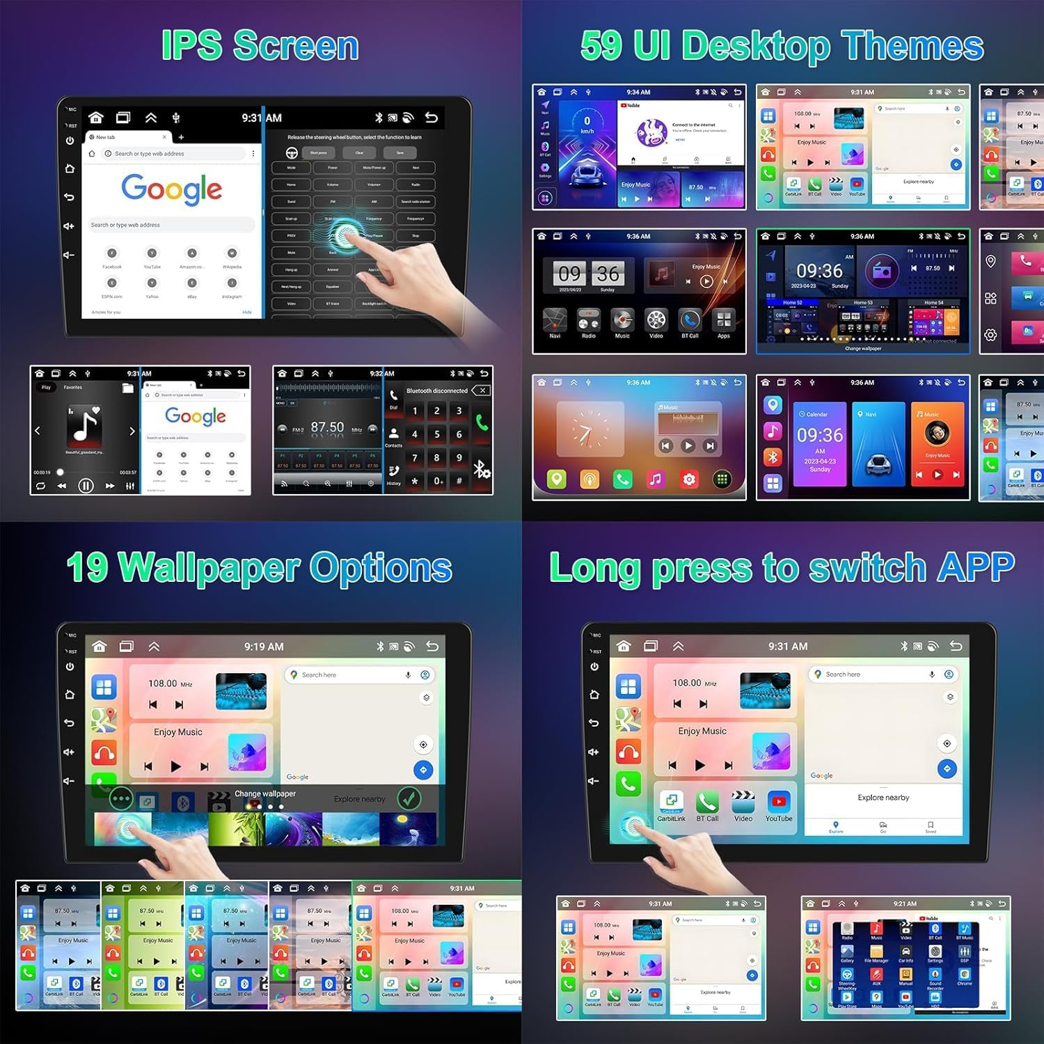 • Персонализируем потребителски интерфейс и допълнителни функции: Персонализирайте шофирането си с 59 уникални теми за десктоп и 19 различни тапети. Функцията за разделен екран предлага разнообразие от опции за показване, които могат да бъдат разделени между три екрана едновременно. Допълнителните функции включват два USB порта, поддръжка за камера за задно виждане и микрофон, управление от волана, гласово управление и AHD широкоъгълна камера за задно виждане с микрофон.