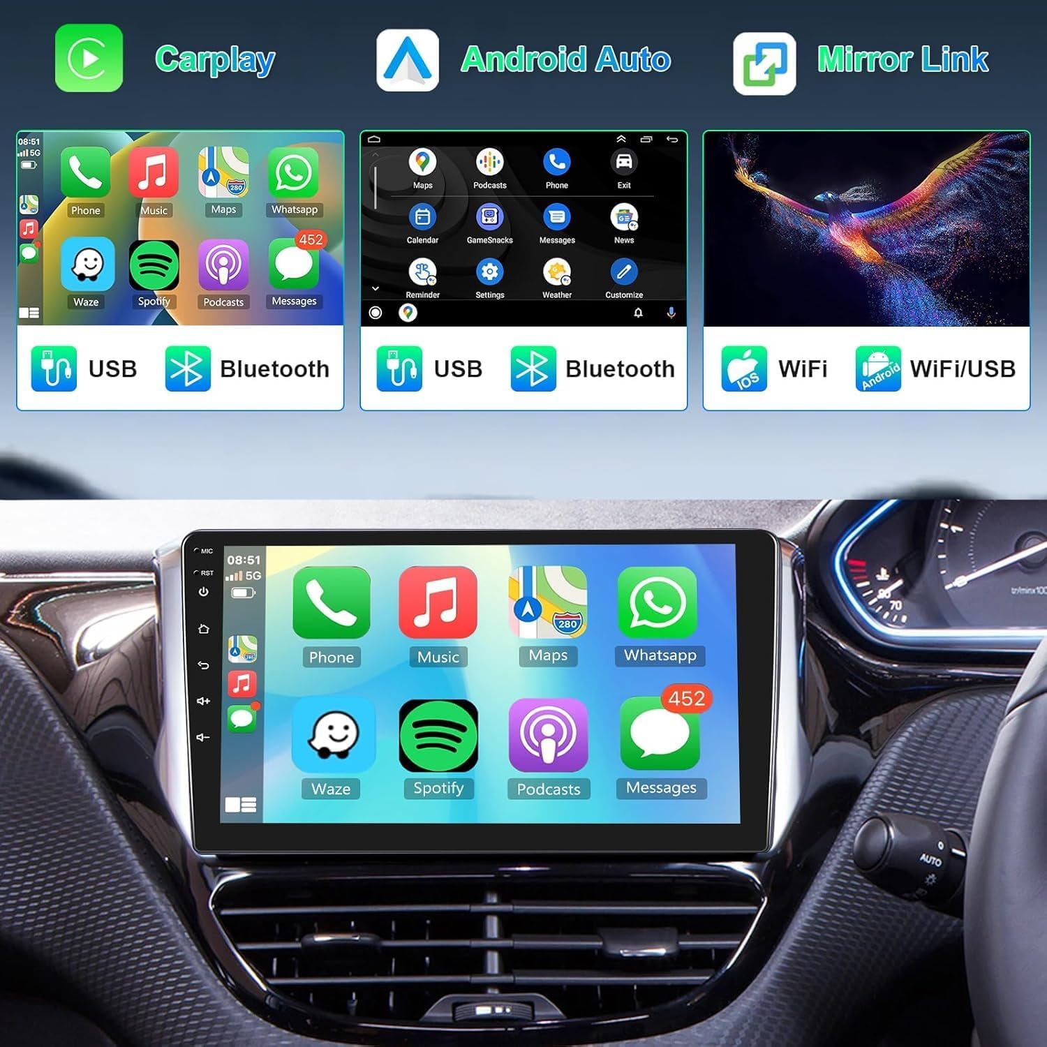 • Свързаност с безжичен Carplay, Android Car и MirrorLink: останете свързани със света с двудиновото автомобилно радио за Peugeot 2008 2012-2018 с разширени опции за свързване. Функцията MirrorLink позволява безпроблемна интеграция на устройства, докато Wireless Carplay и Wireless Auto гарантират, че функциите на вашия смартфон са винаги под ръка, а шофирането ви е подобрено с комфорт и безопасност.