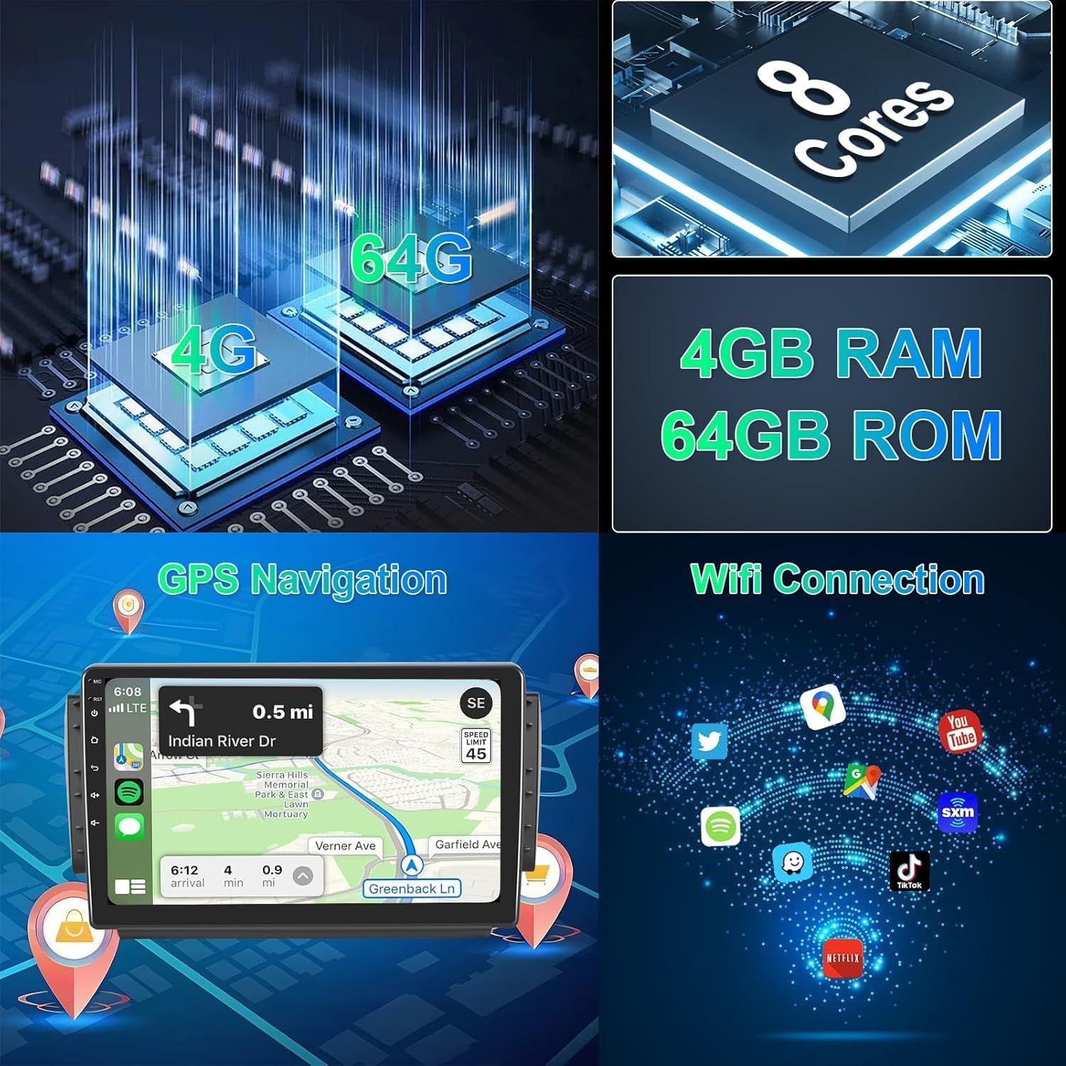 • Силна производителност с 8-ядрен процесор: Android устройството, подходящо за Peugeot 208/2008 2012-2018, предлага светкавично бърза обработка с 8-ядрения процесор на нашето автомобилно радио. В комбинация с 6G и 128G памет, това мощно устройство гарантира, че всяка функция, от GPS навигация до възпроизвеждане на мултимедия, работи с изключителна скорост и ефективност.