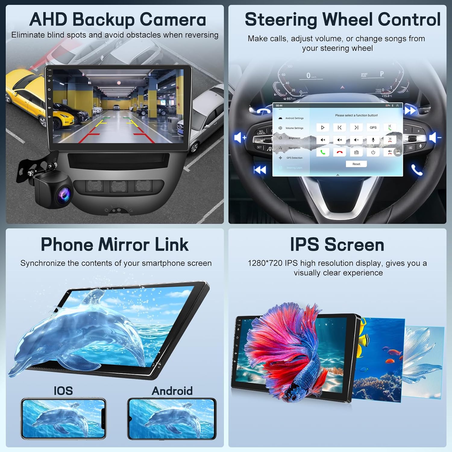 • 【Други основни функции】①Mirror Link: Съвместим с функцията Mirror Link на почти всички телефони с Android и iOS. Можете да синхронизирате смартфона си с големия екран и да се наслаждавате на карти, филми и други функции. ②Разделен екран: многозадачност с разделен екран, поддържа 2 приложения едновременно. ③HD сензорен екран: резолюцията е 1280*720, 10.1-инчов HD сензорен екран, поддръжка на възпроизвеждане на видео