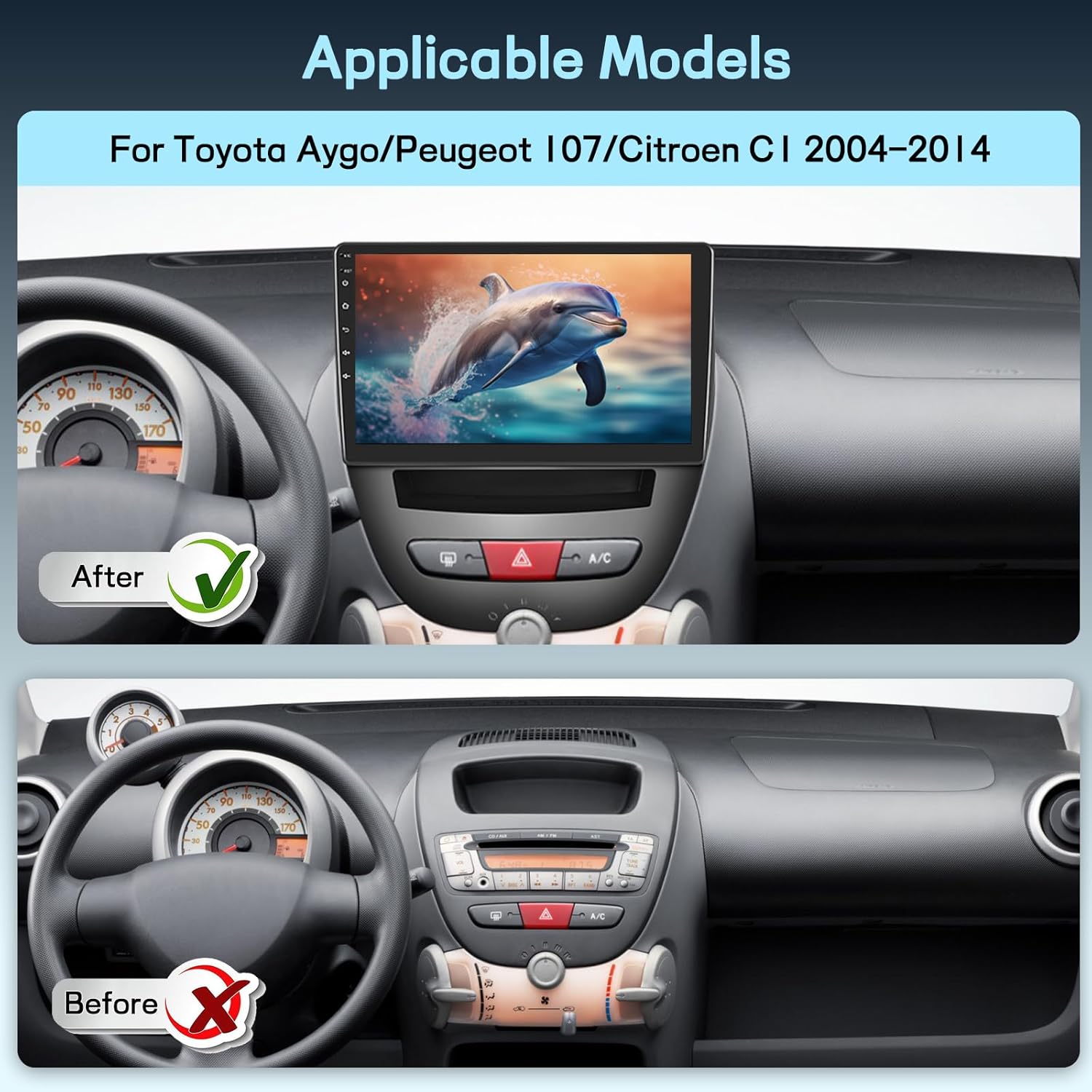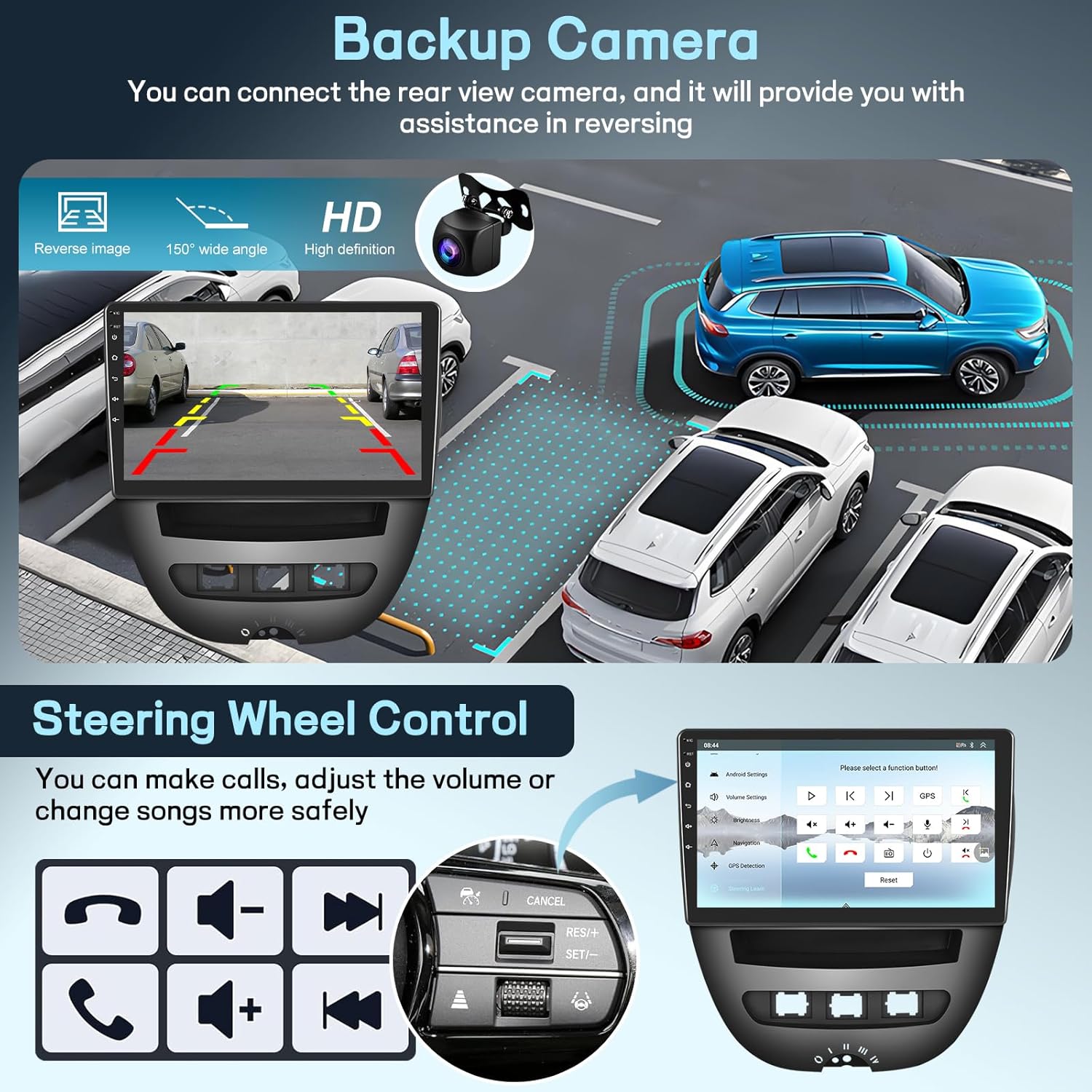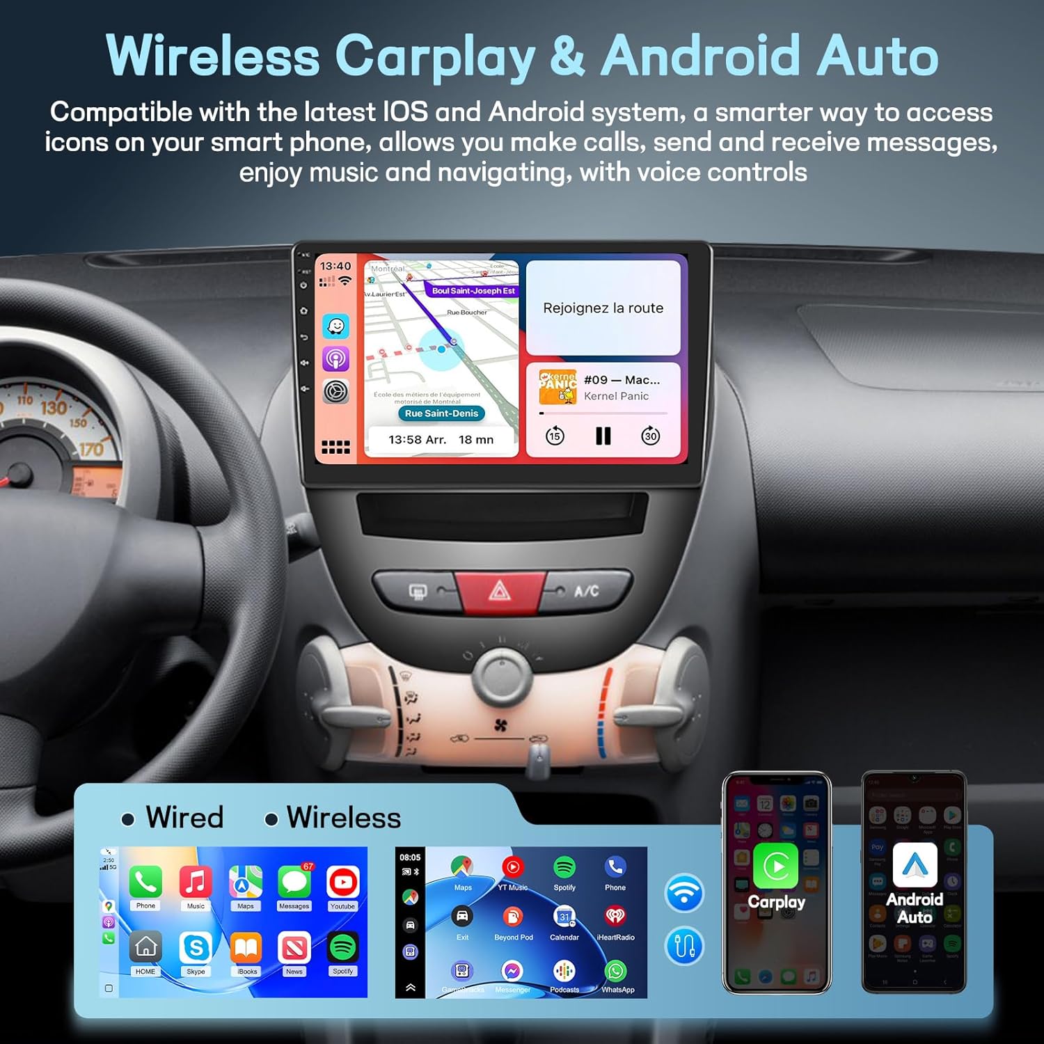 • Безжичен CarPlay, Android автомобил и гласово управление: Това радио за Toyota Aygo с безжичен CarPlay и Android автомобил може лесно да се свърже с вашия смартфон и ви позволява достъп до навигация с карти, телефонни контакти, имейл, музика и други. Благодарение на гласовия асистент можете да осъществявате повиквания, да навигирате и да слушате музика - без ръце за безопасно шофиране.