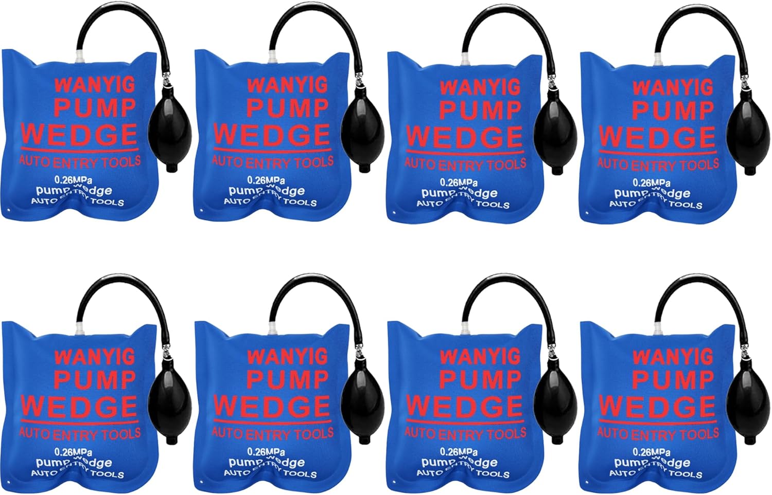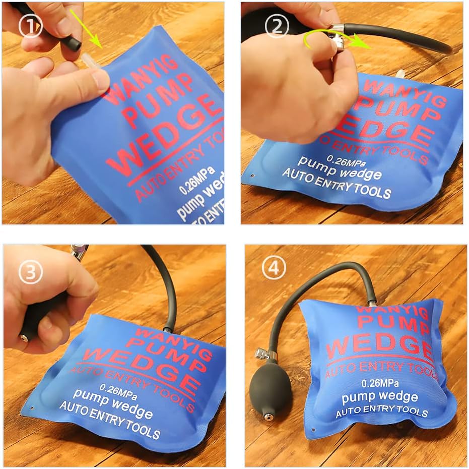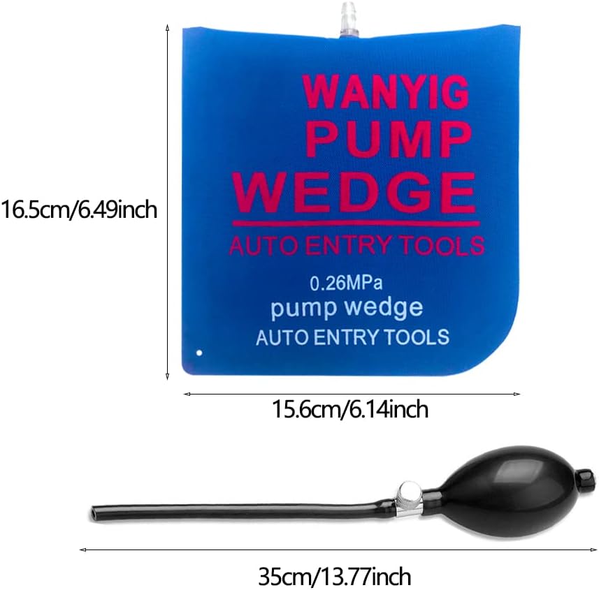 • Размер: 16,5 * 16,5 см. Пакетът включва 8 пакета надуваеми клиновидни помпи, подходящи за монтаж на прозорци, врати и шкафове, заместващи повреждащи лостове и дървени дискове, както и инструменти за ремонт на автомобили.