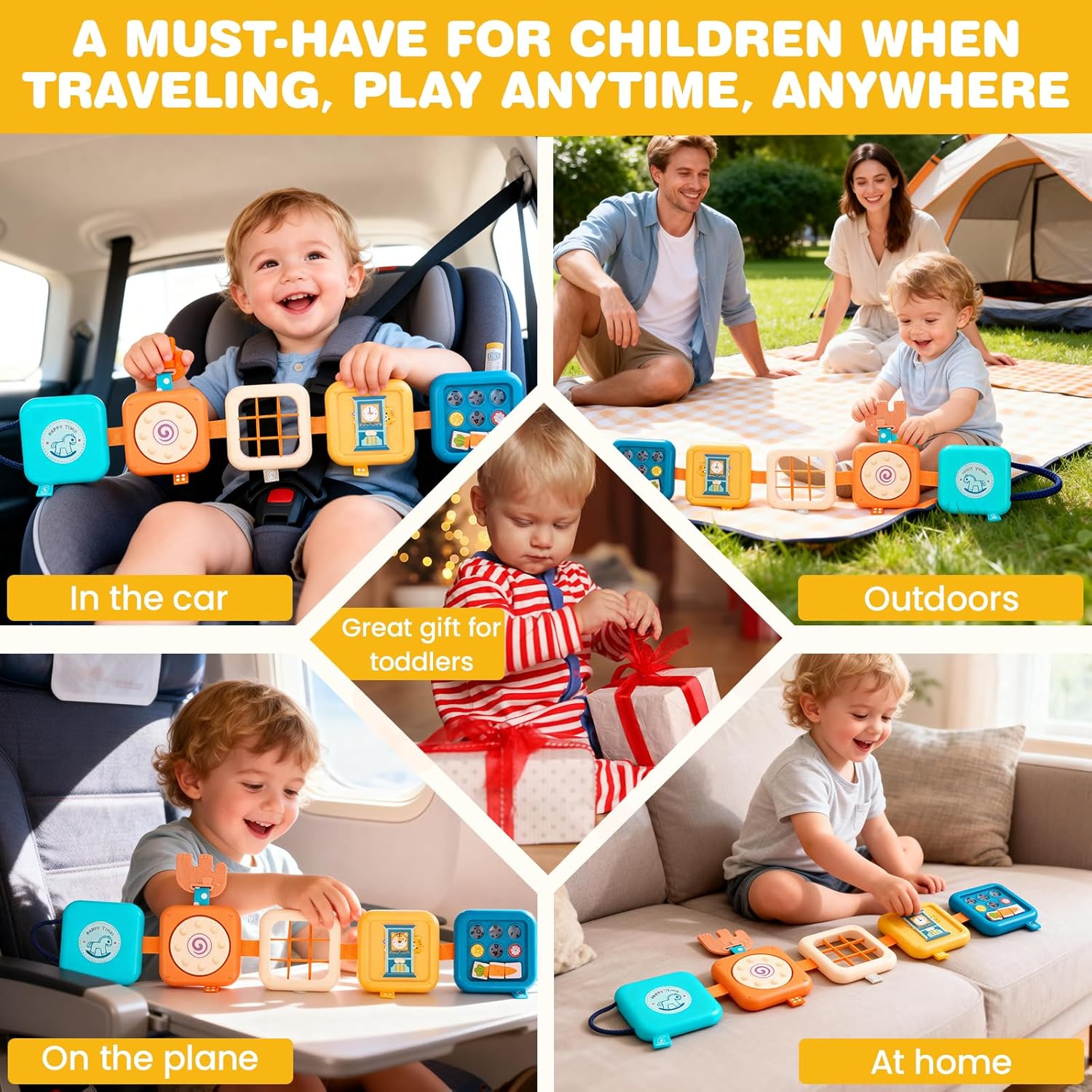 8-в-1 Монтесори играчка, дъска за занимание ABS, сензорна играчка за насърчаване на двигателните умения и когнитивните функции, идеална играчка за пътуване за успокояване на малки деца