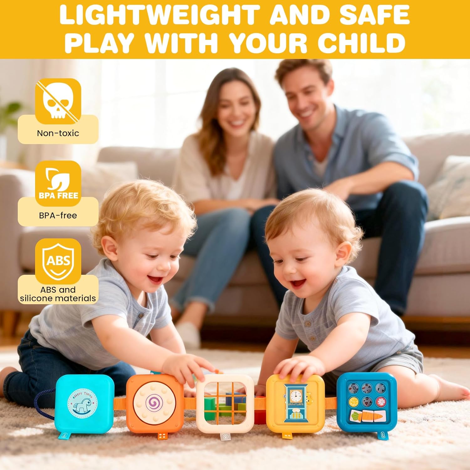 • 【Безопасни и издръжливи материали】 Изработени от висококачествен ABS и силиконови компоненти, всички материали са нетоксични и безопасни за бебето. Заоблените ръбове и стабилната конструкция осигуряват безопасна игра.