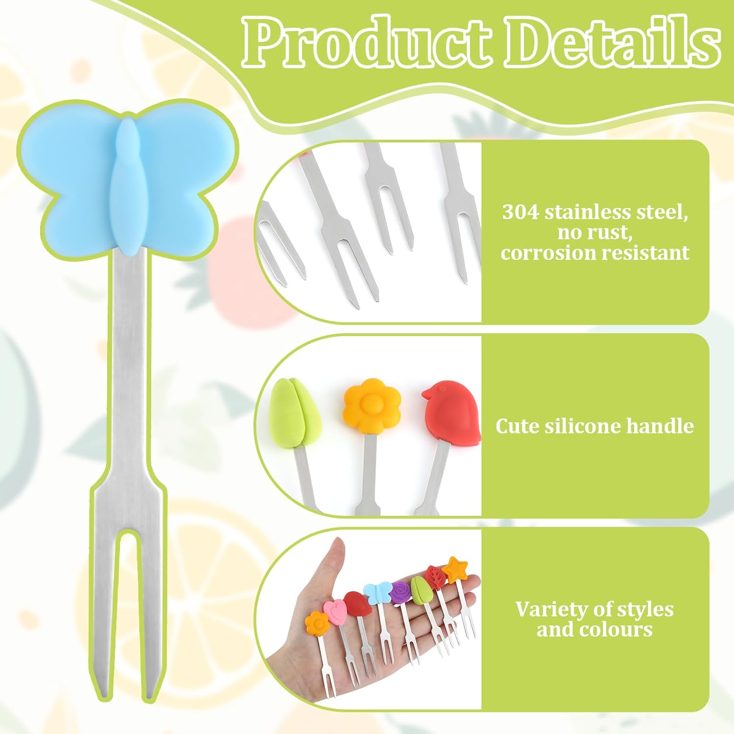 Детските вилички за плодове са изработени от неръждаема стомана 304 и силикон, не са лесни за ръжда, устойчиви на корозия, износоустойчиви, лесни за почистване, многократна употреба.