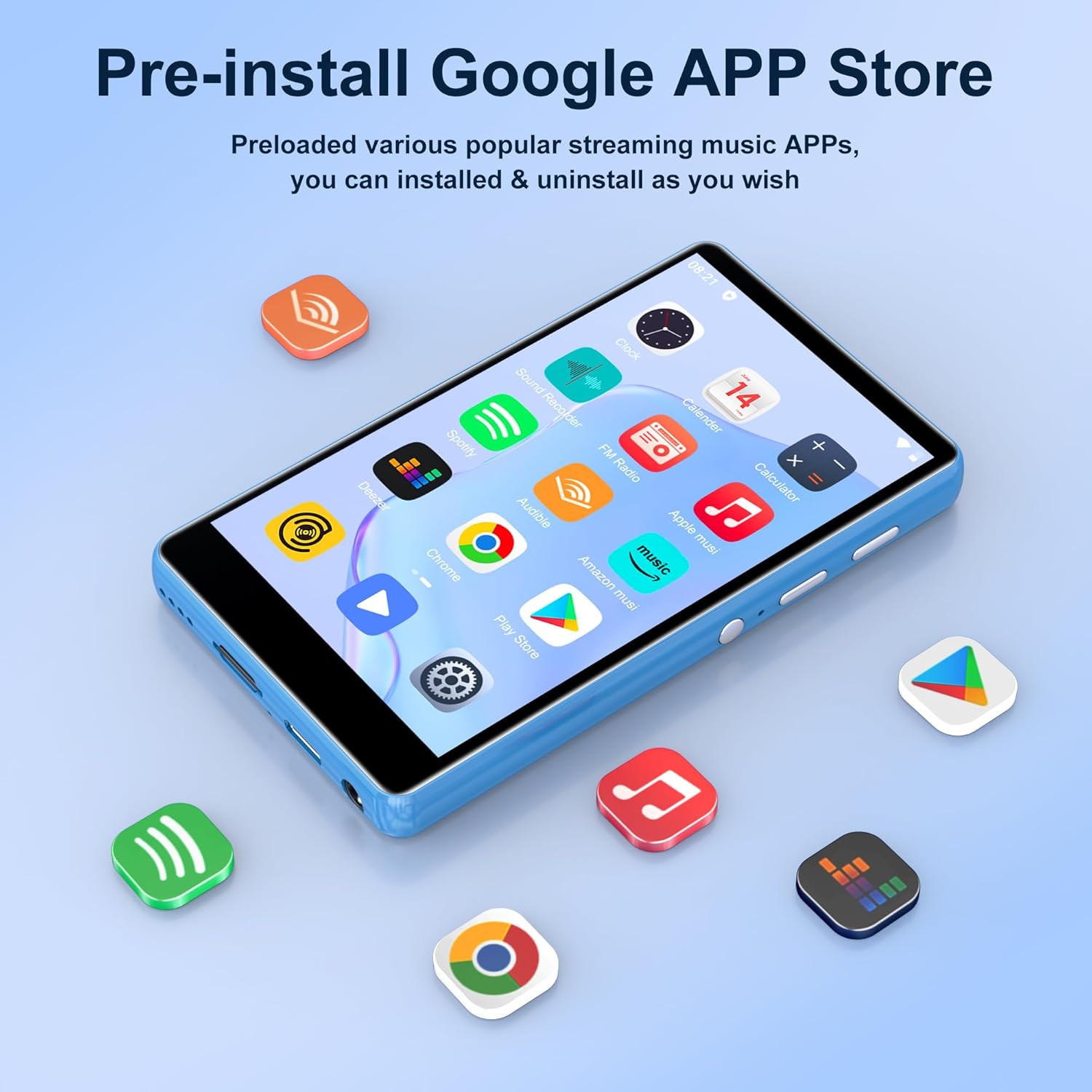 • MP3 с голяма памет за Android: Bluetooth MP3 плейърът се захранва от операционната система Android и вградения 8-ядрен чип MTK6625, което го прави по-бърз и плавен. В допълнение, музикалният плейър на Amazon се предлага с 64GB карта памет, която ви позволява да разширите външната памет до 512GB.