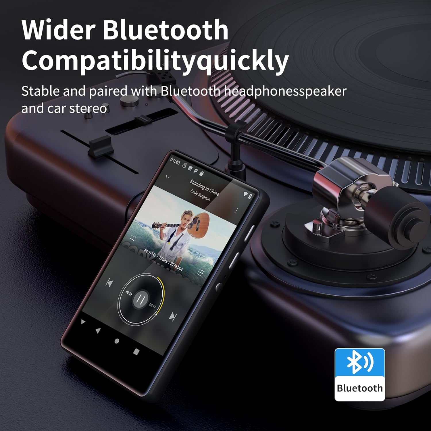 • MP3 с голяма памет за Android: Bluetooth MP3 плейърът се захранва от операционната система Android и вградения 8-ядрен чип MTK6625, което го прави по-бърз и плавен. В допълнение, музикалният плейър на Amazon се предлага с 64GB карта памет, която ви позволява да разширите външната памет до 512GB.