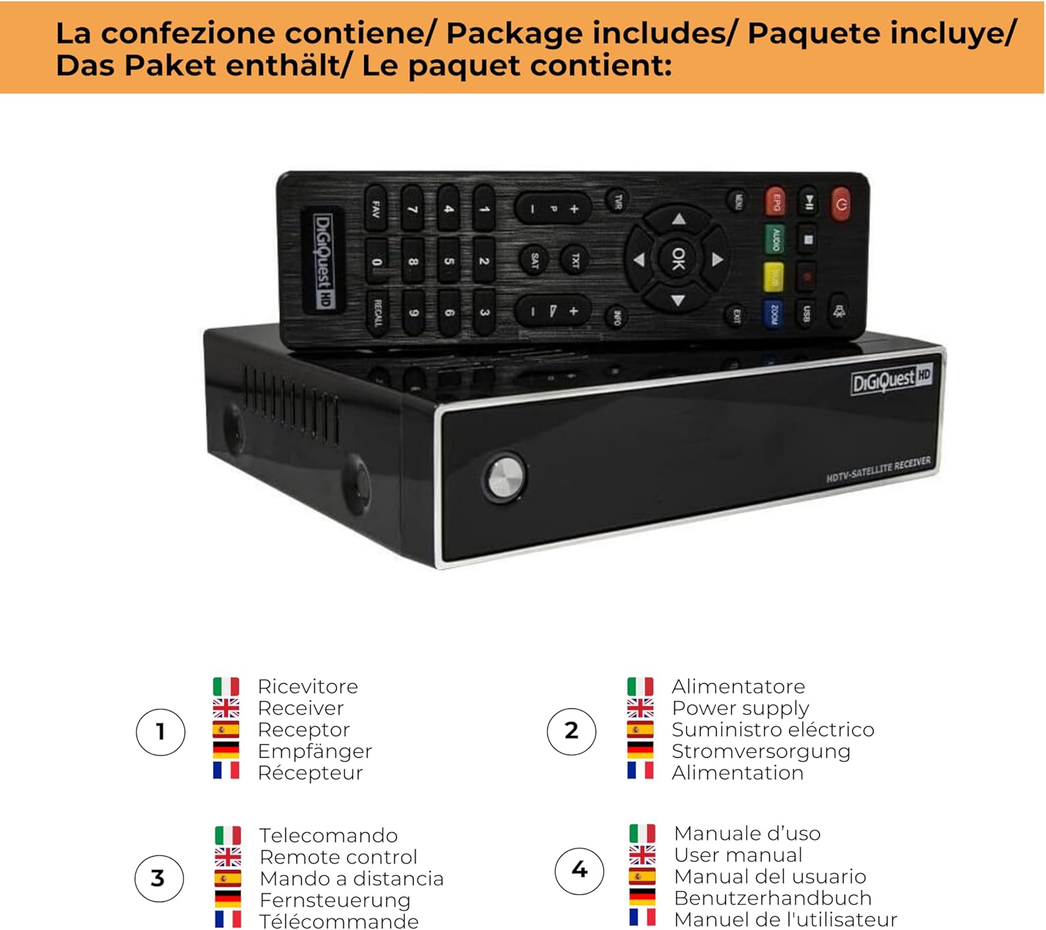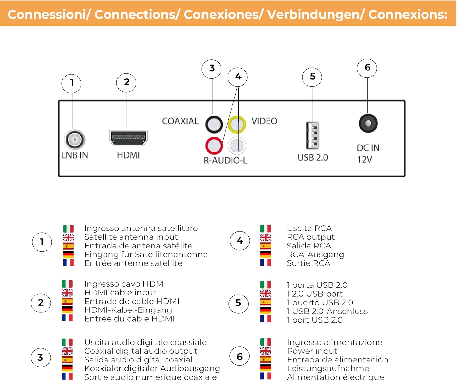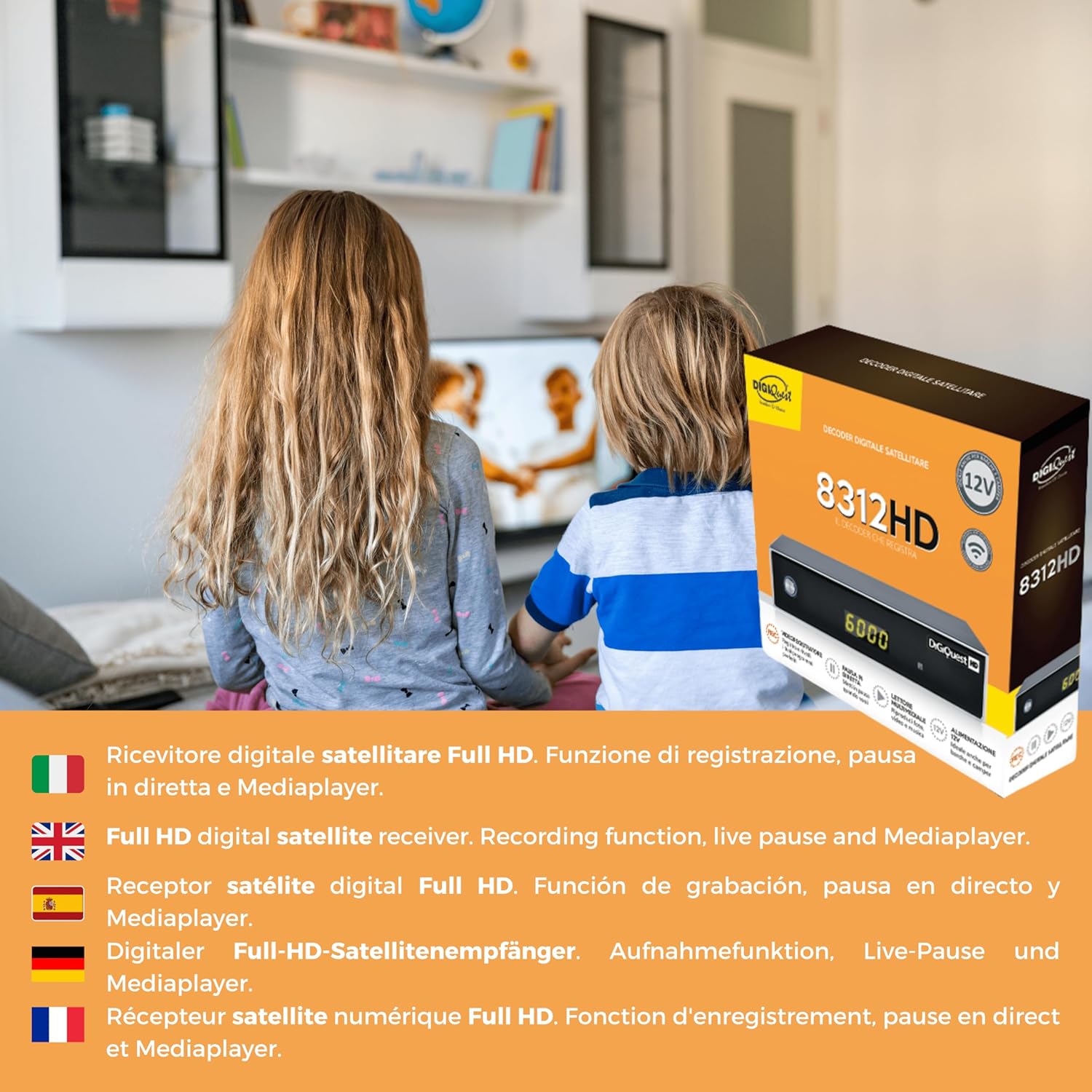 Цифров сателитен приемник Full HD 1080p. Записвайте любимите си предавания и възпроизвеждайте музика, снимки и видеоклипове. Пауза на живо: Поставете на пауза всяка телевизионна програма на живо, за да я възобновите по всяко време. Захранване 12V, идеално за лодки и кемпери.