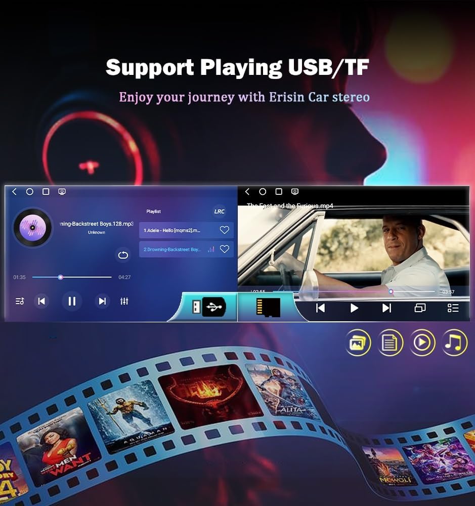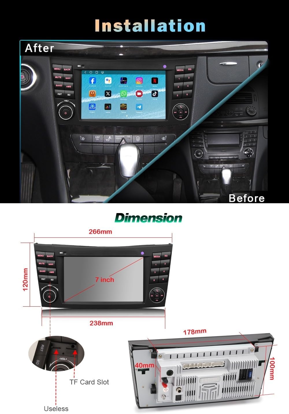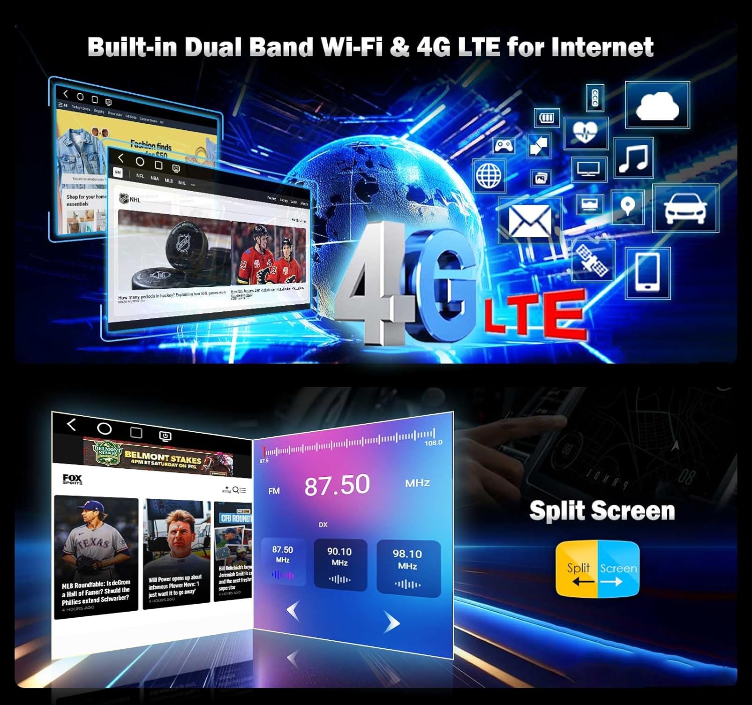 Android 14.0 OS, Qualcomm Snapdragon 460 chips, 11nm technology, eight-core processor, 8GB RAM & 128GB ROM, 3 USB up to 3 x 256GB extended memory. Optimised CANbus decoding, maintains OEM function. Integrated DSP (BU32107) amplifier system with 48-band EQ can get the perfect perfect sosobring it into your car. Built-in wireless and wired Apple CarPlay and Android car. No need to use another adapter. The carplay function can be realized by connecting the mobile phone to Bluetooth and the Android car function can be realized by connecting the mobile phone with USB data cable or Bluetooth. Built-in Bluetooth 5.1 module, hands-free calls, Bluetooth music, phone book, display of the last call. Built-in GPS module that supports offline GPS navigation and prepares GPS function. Built-in dual band WiFi for Internet, supports 2.4-GHz and 5 GHz WiFi band. Built-in 4G module for the Internet, supports 99% of network operators worldwide, supports micro SIM card. Built-in Android multimedia player, it can play music/video/photo from internal memory or external USB stick. Built-in USB, TF, radio, RDS, clock, calendar, calculator, chrome, Adobe reader. Supports DAB+, DVB-T/T2, TP. MS, OBD2 DVR, camera, AVIN etc. advanced functions. Supports steering wheel remote control, driver can operate the product easier and safer. Intelligent UI design, you can change wallpaper, warm or cool colour and LED button lighting. Supports split screen view, you can run two apps side by side.