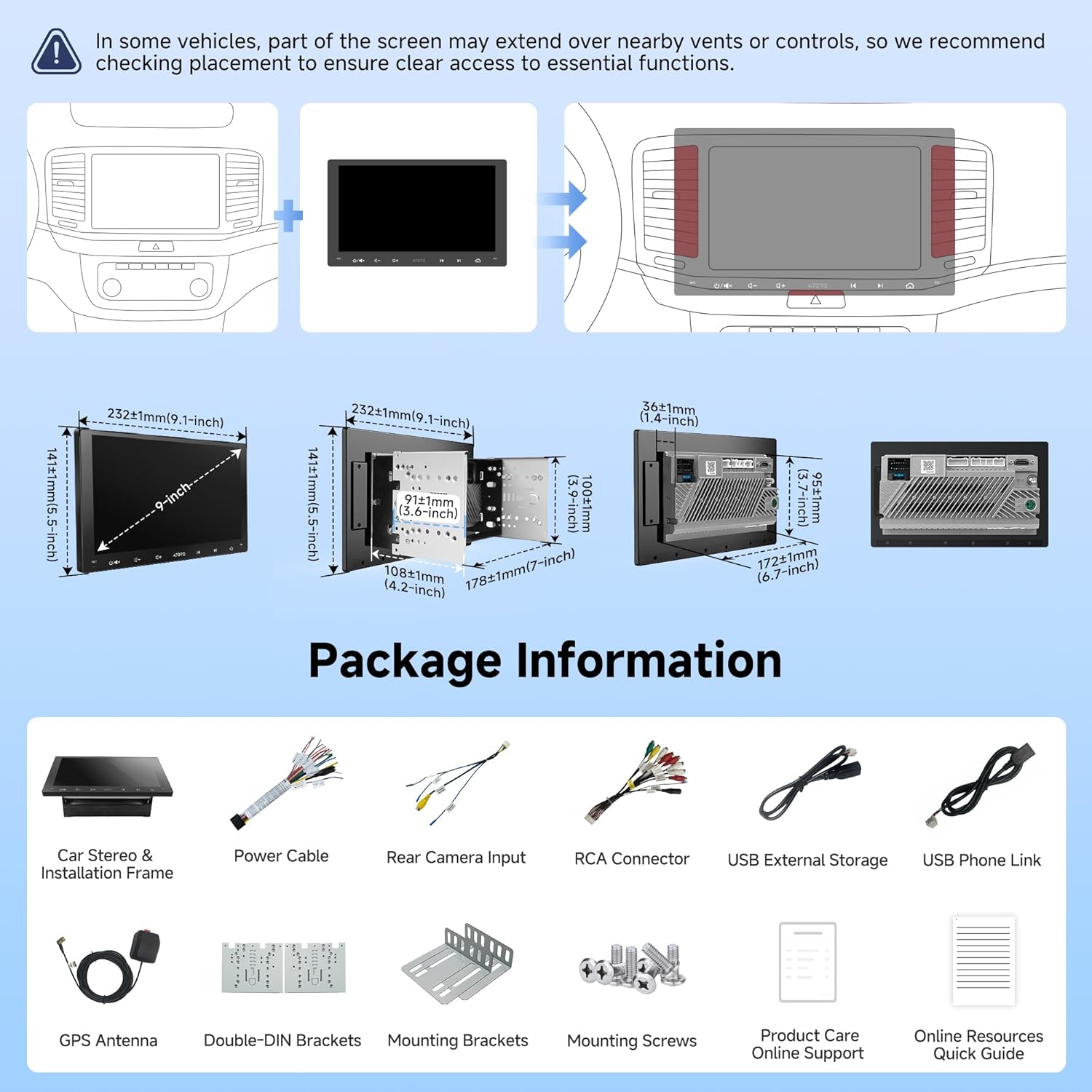 [9 инча] ATOTOZONE Android Двойно DIN радио Безжично CarPlay и Android автомобилно, ChatGPT-AI автомобилно радио 2Din Съвместимо с DAB/DAB+, GPS навигация, Wi-Fi/BT/USB, 24-инчов EQ и DSP, AM/FM/RDS, 2G + 32G