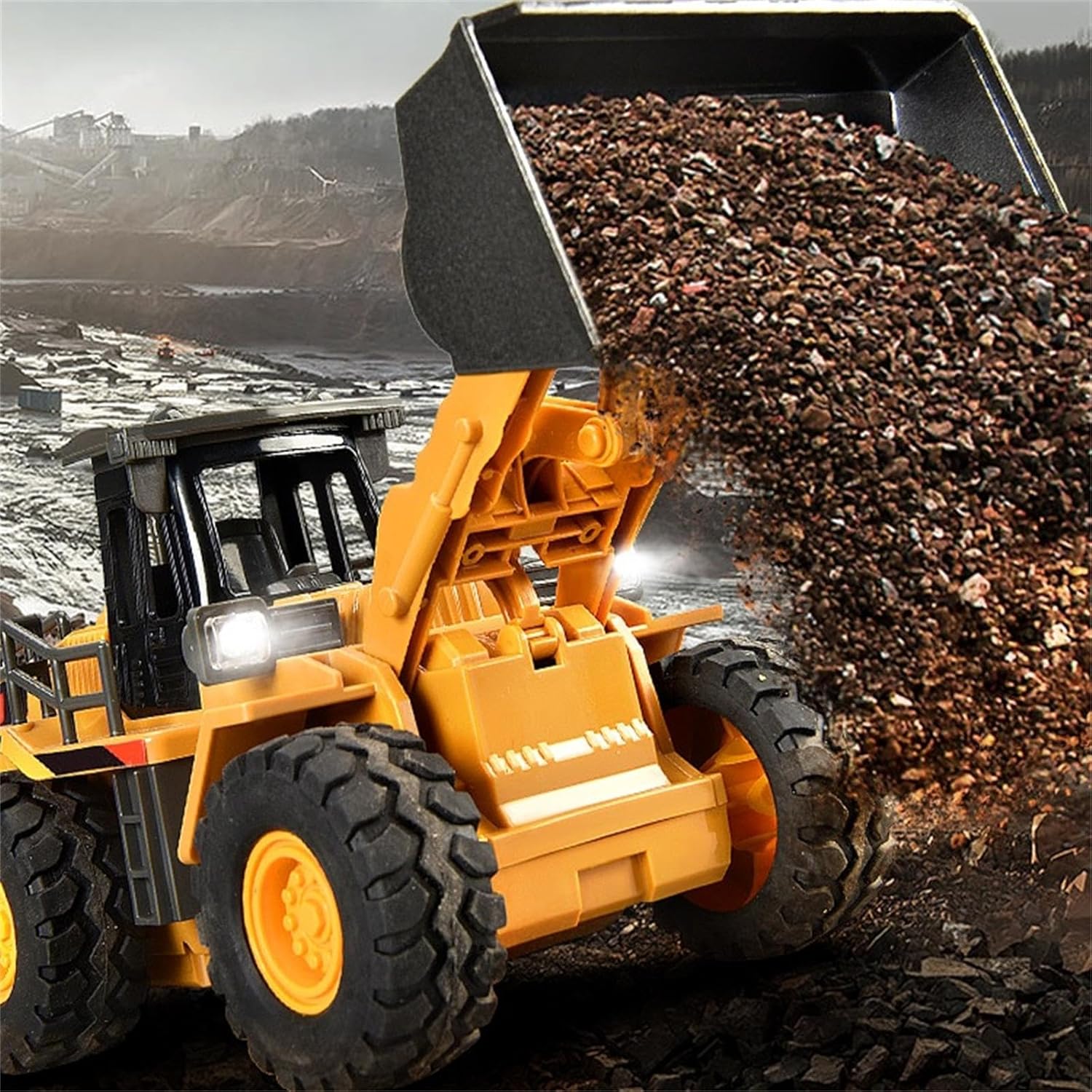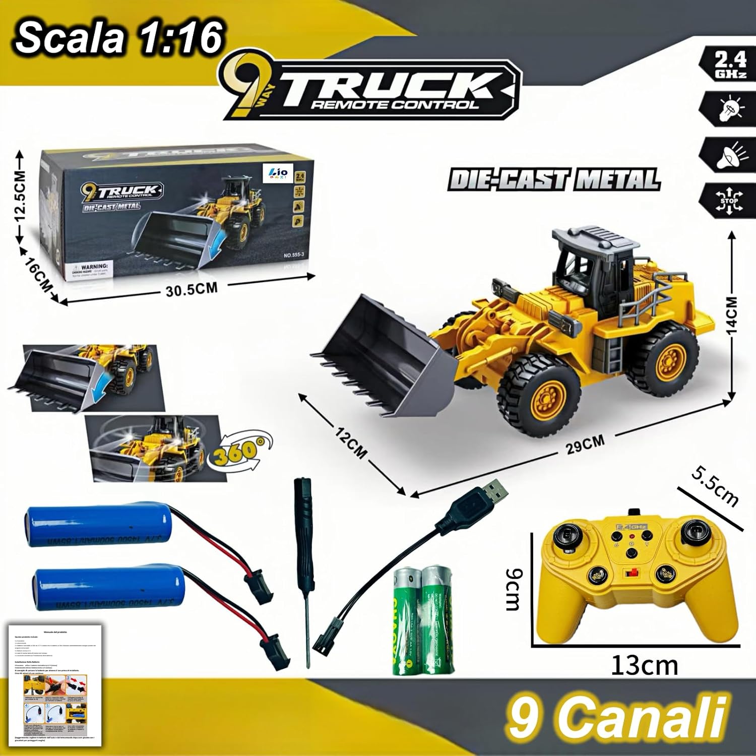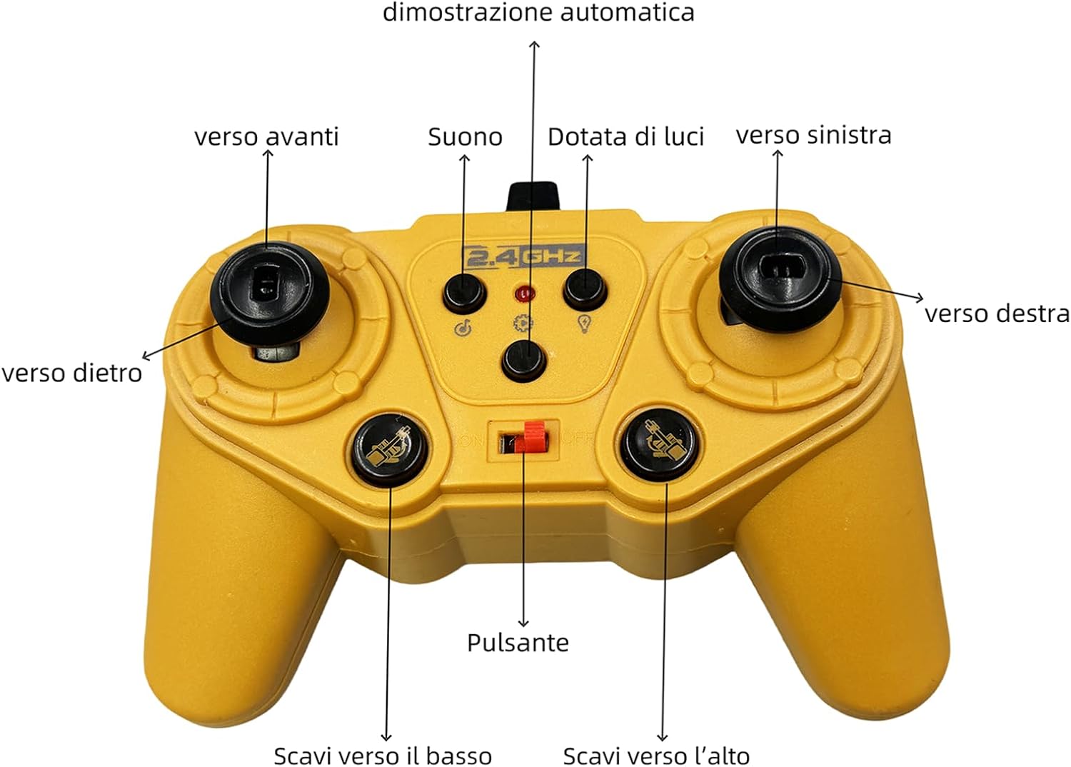 This product: 1:16; 9 channels; Bulldozer with alloy 2.4G remote control, with light and operating noise. When the switch (at the bottom of the vehicle) is turned on, the front light turns on and a sound sounds the vehicle in motion. Designed in the proportions of a car, has a simulated cockpit, simulated bucket, simulated exhaust pipe, guiding plan and simulated scales and the body is yellow. The bucket is made of alloy. You can use the remote control to control the top and bottom of the bucket. Be careful not to break the excavation bar with force to avoid damage to the toy. This product cannot be washed. Remote Control Functions The left joystick is used to drive forward and reverse, while the right joystick is for turning left and right (as long as you hold down the left side, you can control the car to turn left in circle). Press and hold the right side to control whether the car turns to the right (rotates in a circle), there are three buttons in the middle of the remote control: the middle button is for demonstration with only one button, the top left is for music. Switch (the remote control has a music pattern) at the top right is the light switch (the remote control has a light pattern) and there are three buttons at the bottom of the remote control: the red button in the middle is the main switch of the remote control: (Once the device is on, the red indicator light will light up and you can start the remote control). The left button is used to control the bucket down (the remote control has a printed bucket model) is used to control bucket up (e.g. remote control has a pallet pattern). The distance of the remote control is about twenty meters and you can play at the same time without interference. Battery: the case uses a 3.7V lithium battery, configuration (included): a charging cable. Remote control battery: 2 x 1.5V AA batteries (included) [Additional delivery: a body battery and a small screwdriver]. The body material of this product is PVC. Selected materials, smooth and burr-free body, beautiful and compact body, strong arm force, easy to tear, full performance, simulates real work operations, wheels are made of rubber. The size of this product is 30.5 x 16 x 12.5 cm / weight 727 g; the size of the remote control is 23.5 x 10.5 cm.