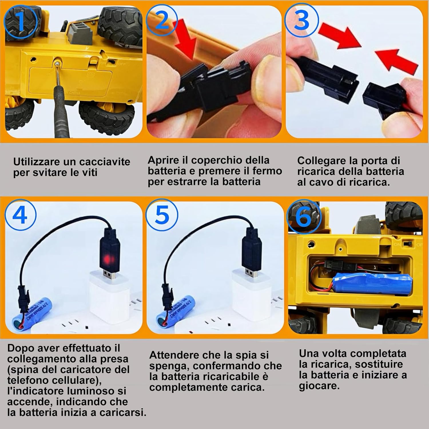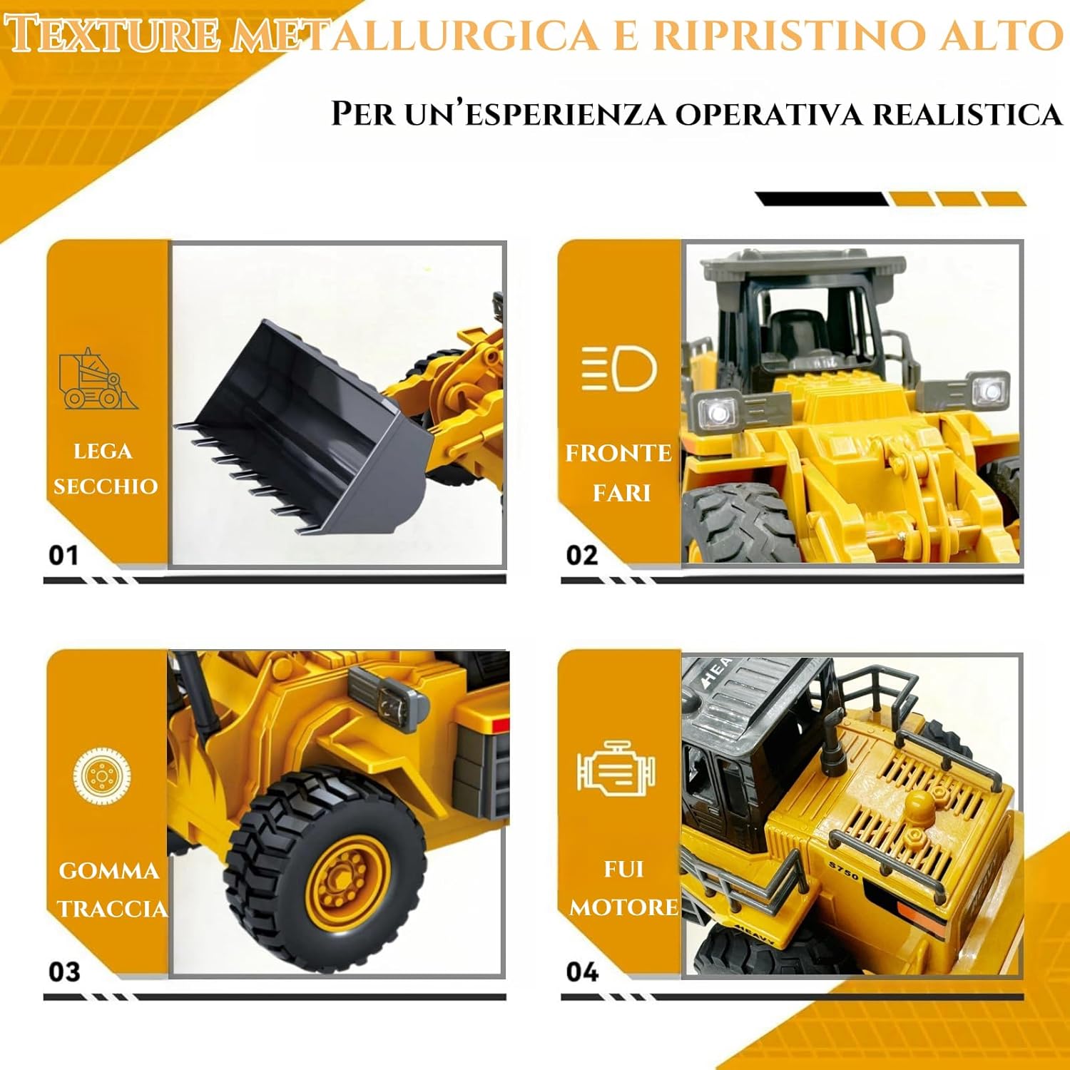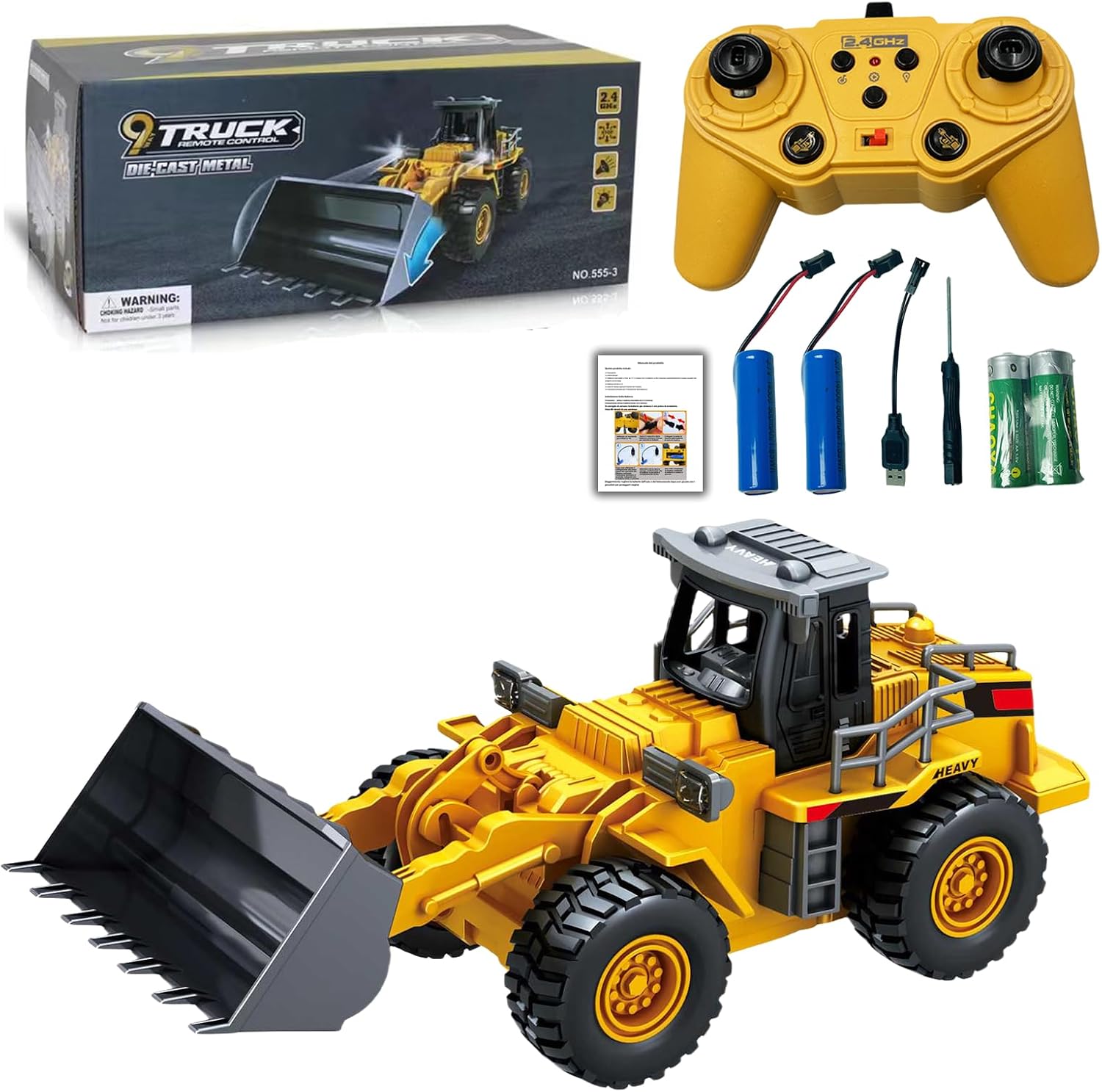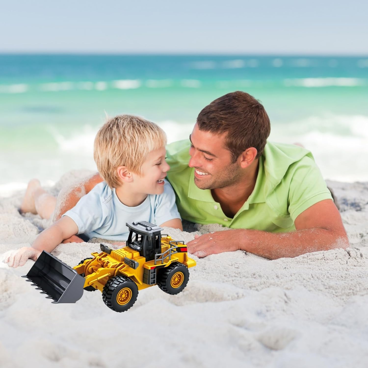 This product: 1:16; 9 channels; Bulldozer with alloy 2.4G remote control, with light and operating noise. When the switch (at the bottom of the vehicle) is turned on, the front light turns on and a sound sounds the vehicle in motion. Designed in the proportions of a car, has a simulated cockpit, simulated bucket, simulated exhaust pipe, guiding plan and simulated scales and the body is yellow. The bucket is made of alloy. You can use the remote control to control the top and bottom of the bucket. Be careful not to break the excavation bar with force to avoid damage to the toy. This product cannot be washed. Remote Control Functions The left joystick is used to drive forward and reverse, while the right joystick is for turning left and right (as long as you hold down the left side, you can control the car to turn left in circle). Press and hold the right side to control whether the car turns to the right (rotates in a circle), there are three buttons in the middle of the remote control: the middle button is for demonstration with only one button, the top left is for music. Switch (the remote control has a music pattern) at the top right is the light switch (the remote control has a light pattern) and there are three buttons at the bottom of the remote control: the red button in the middle is the main switch of the remote control: (Once the device is on, the red indicator light will light up and you can start the remote control). The left button is used to control the bucket down (the remote control has a printed bucket model) is used to control bucket up (e.g. remote control has a pallet pattern). The distance of the remote control is about twenty meters and you can play at the same time without interference. Battery: the case uses a 3.7V lithium battery, configuration (included): a charging cable. Remote control battery: 2 x 1.5V AA batteries (included) [Additional delivery: a body battery and a small screwdriver]. The body material of this product is PVC. Selected materials, smooth and burr-free body, beautiful and compact body, strong arm force, easy to tear, full performance, simulates real work operations, wheels are made of rubber. The size of this product is 30.5 x 16 x 12.5 cm / weight 727 g; the size of the remote control is 23.5 x 10.5 cm.