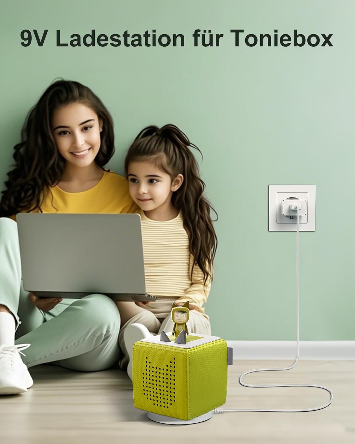 • За зарядно устройство TonieBox. Спецификации: Вход: AC 100–240 V; Изход: DC 9 V 1.5 A; Дължина на захранващия кабел: 1.8 м. Това зарядно устройство е тествано с аудио плейъра TonieBox и е отличен заместител на оригиналното зарядно устройство TonieBox.