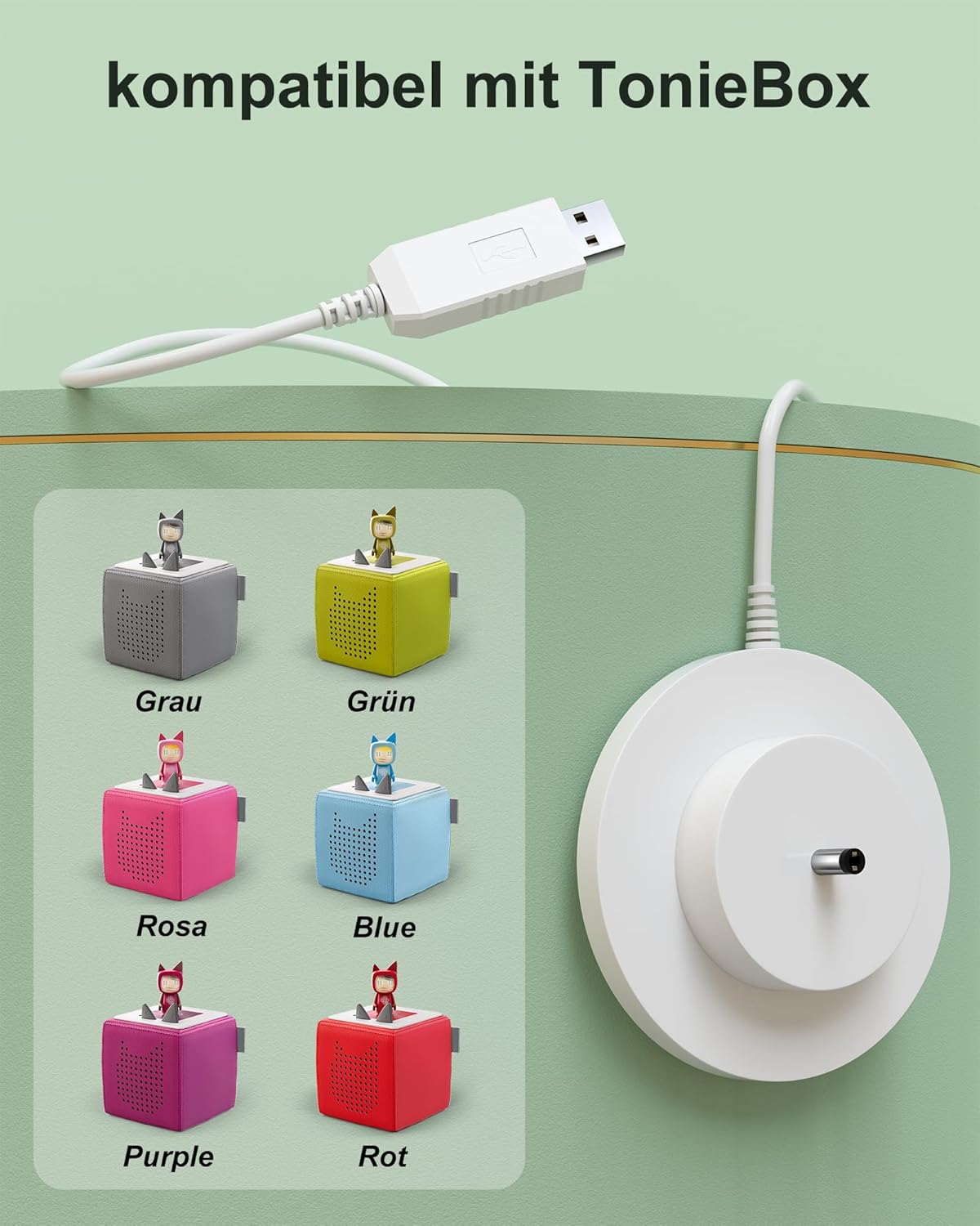 9V USB кабел/зарядно за зареждане за Toniebox, съвместим с USB станция за зареждане на Toniebox, захранващ кабел, стартер за аудио плейър, оригинален