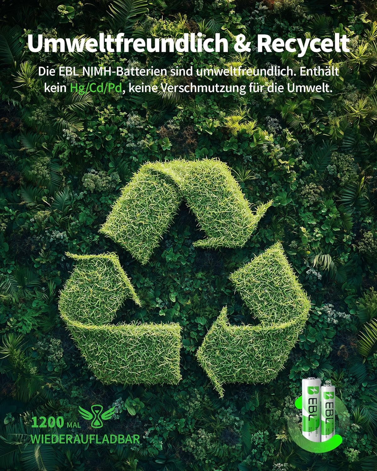 • Батериите EBL AA AAA имат специална защитна технология и специален защитен материал, за да удължат живота на батерията до 1200 Hz.