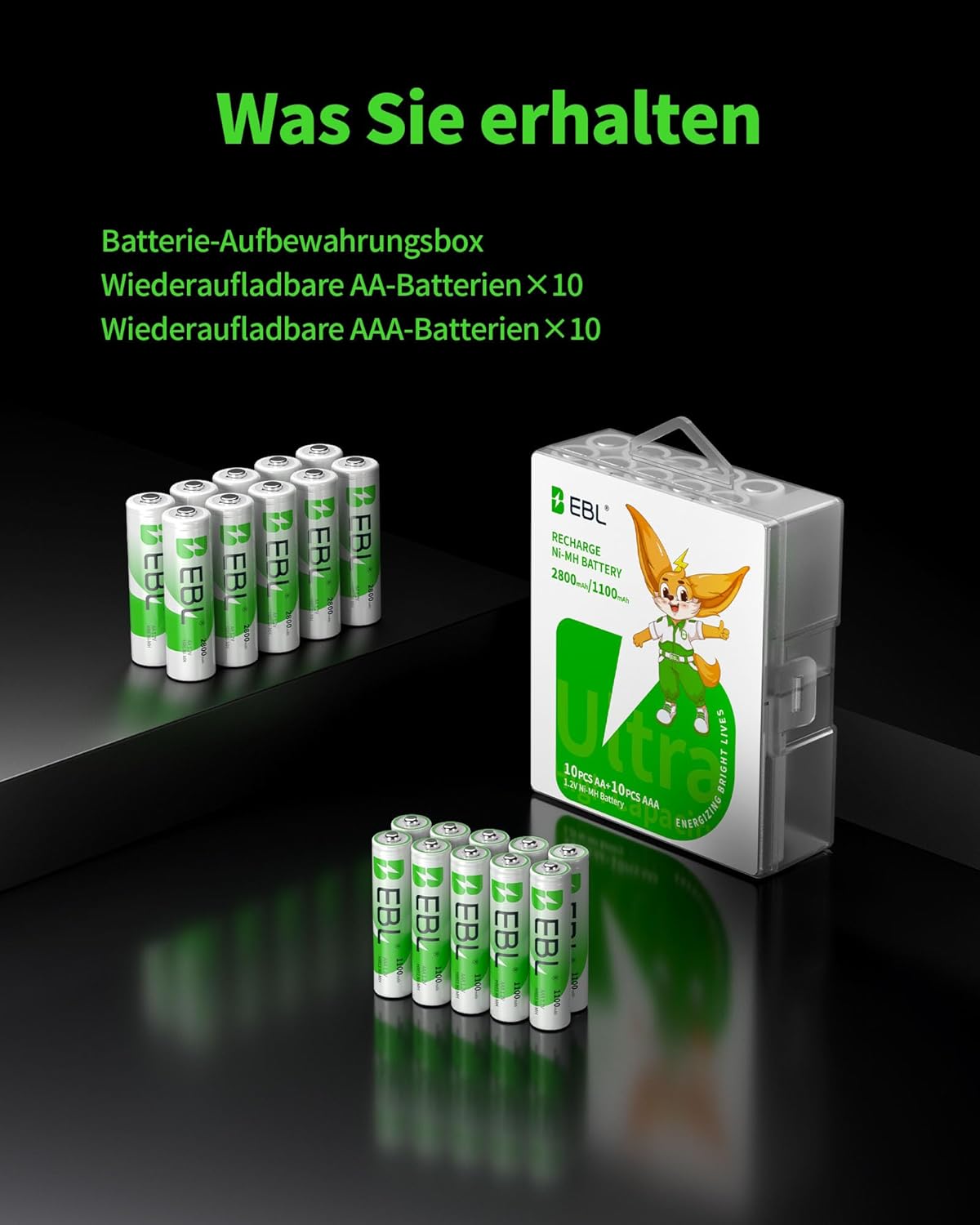 AA батерии AAA пакет от 20: EBL 10x 2800mAh AA + 10x 1100mAh AAA - акумулаторни, ниско саморазреждане, идеални за високопроизводителни устройства