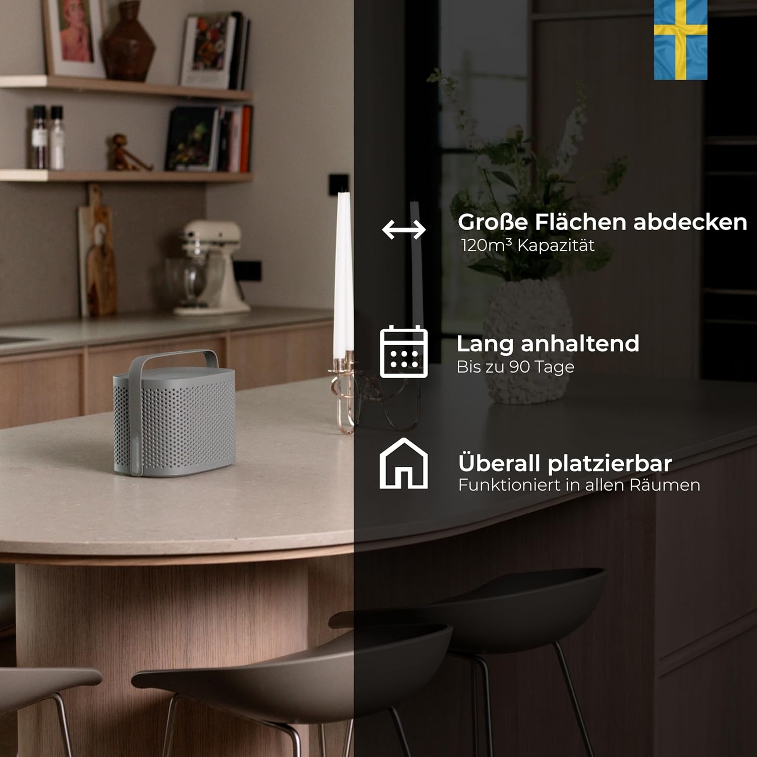 • Абсорбиране на влага: Насладете се на свеж, незамърсен въздух у дома. Гранулите на влагоабсорбатора се свързват с излишната влага във въздуха в помещението и по този начин се борят с причината за мухъл и миризми в избите. И това работи 24 часа в денонощието, безшумно и без електричество.