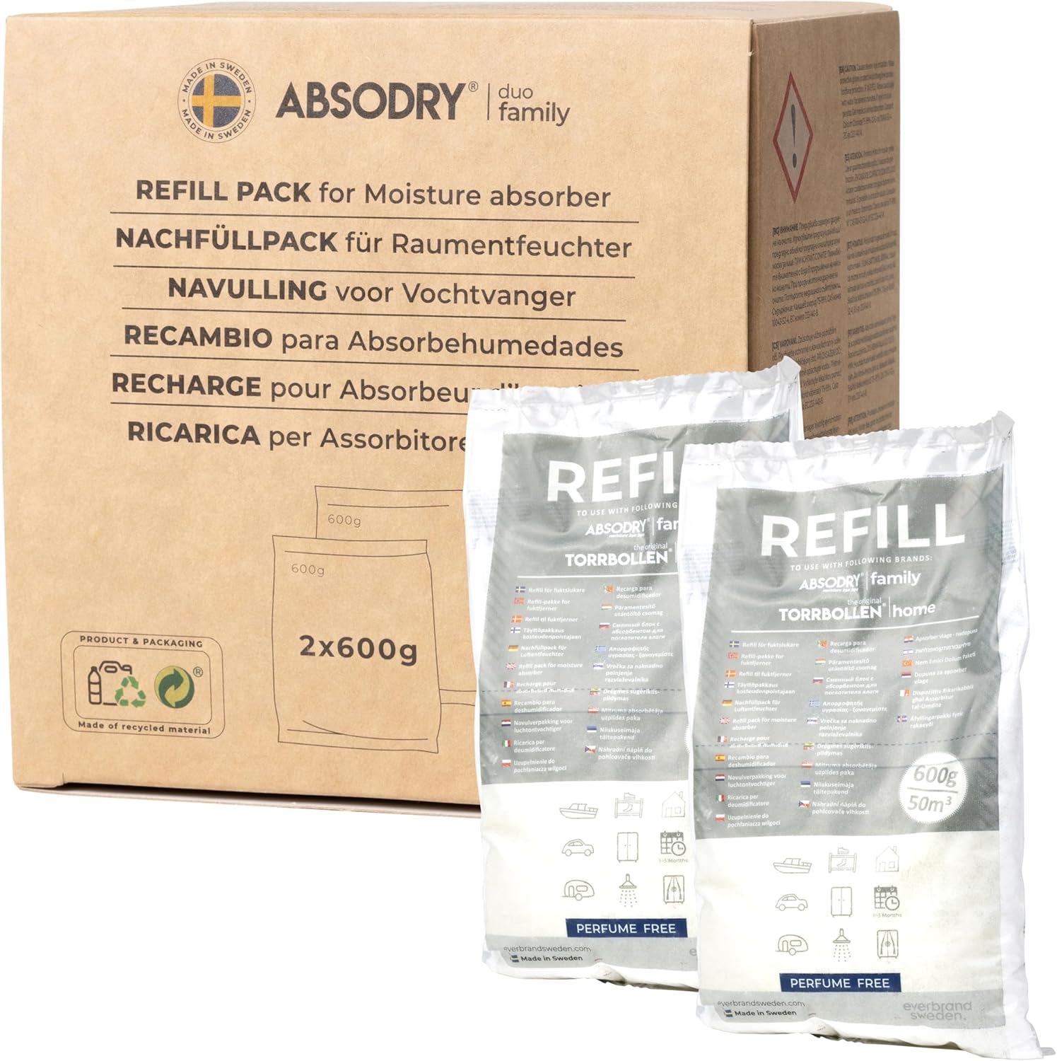 • Универсално съвместим: Комплектът за пълнене на влагоабсорбатор Absodry е съвместим с влагоабсорбатори Absodry с капацитет 600 г. В икономична опаковка от 2 x 600 г за до 6 месеца работа (в зависимост от влажността).