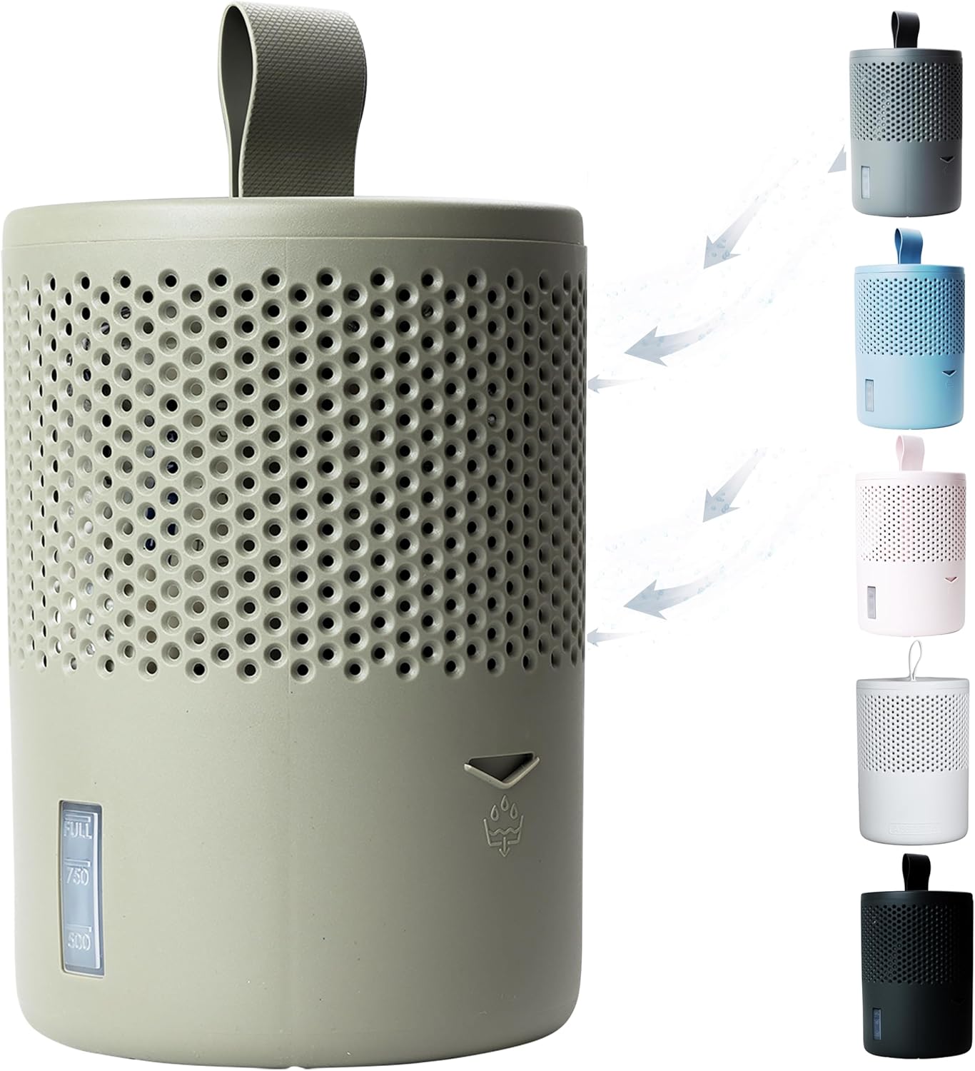 AbsoDry Влагоабсорбатор за стаи без електричество, за площ до 25 м², Включва пакет за пълнене, Изработен от рециклирана пластмаса, За хол, баня, мазе, Влагоабсорбатор, Сив