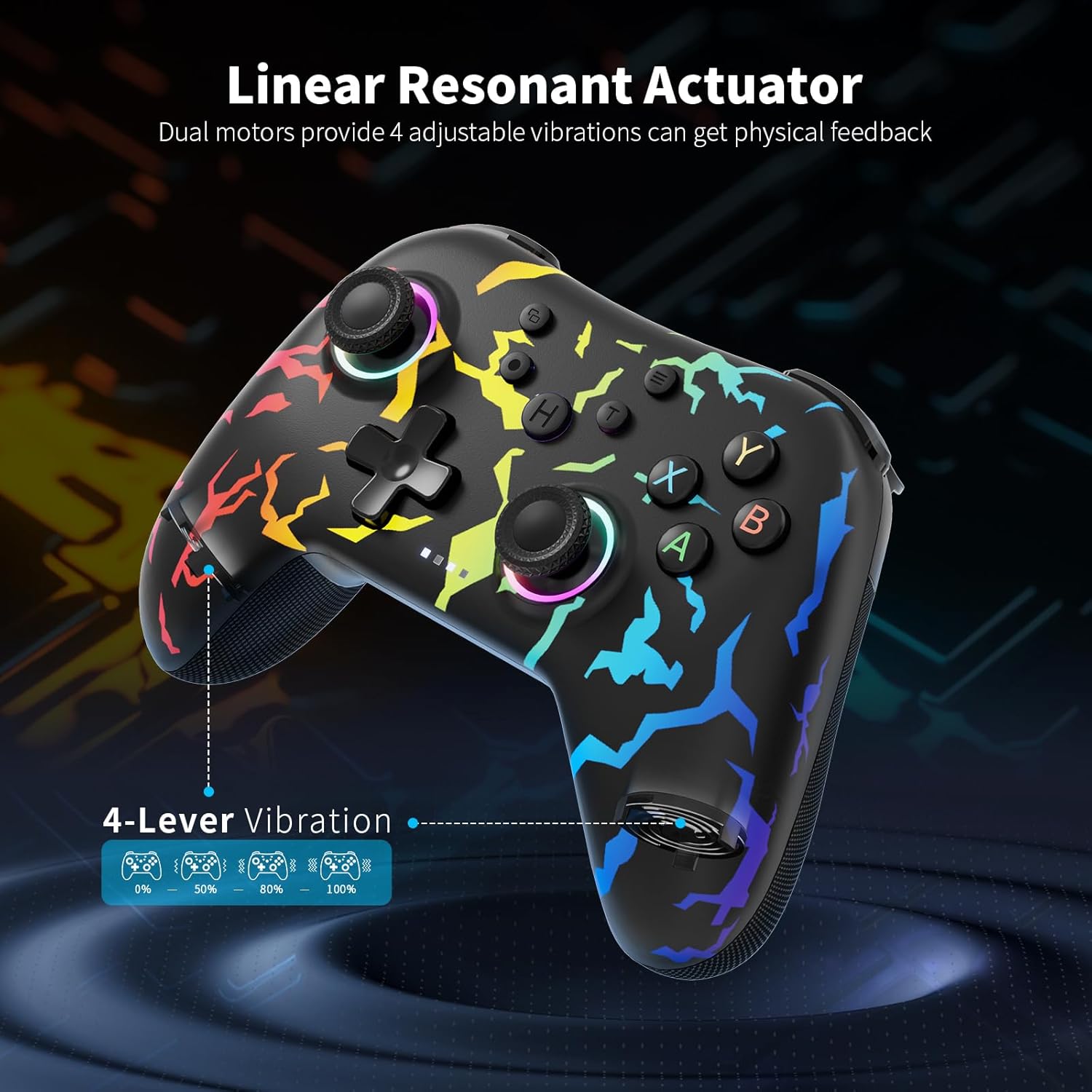 AceGamer Aurora 2.4G безжичен Bluetooth контролер, Windows PC/Switch/Stem/iOS/Android, PC геймпад, джойстик с ефект на Хол, програмируем бутон за връщане назад, линеен резонансен актуатор (Rainbow)