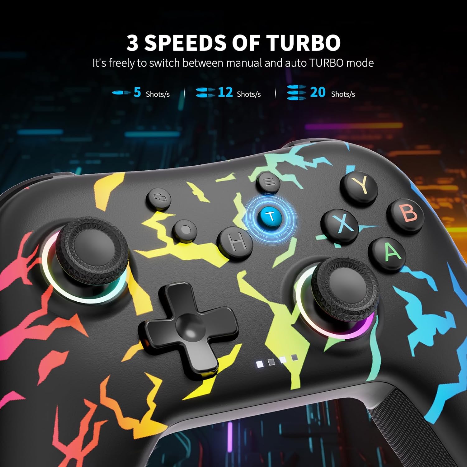 • [Линеен спусък/Джойстик с ефект на Хол]: Безжичният компютърен контролер AceGamer се предлага с линейни спусъци и два превключвателя за пътя на спусъка на гърба на контролера, които позволяват на играча да регулира спусъка на пълен и половин ход чрез флуктуиращ превключвател, за да подобри допълнително игровото изживяване. Проектиран за джойстик „без мъртъв ъгъл“ и „без отклонение“. Безжичният компютърен контролер AceGamer е оборудван с джойстик с ефект на Хол, който не само удължава живота на джойстика, но и позволява безлатентно и прецизно, завладяващо игрово изживяване.