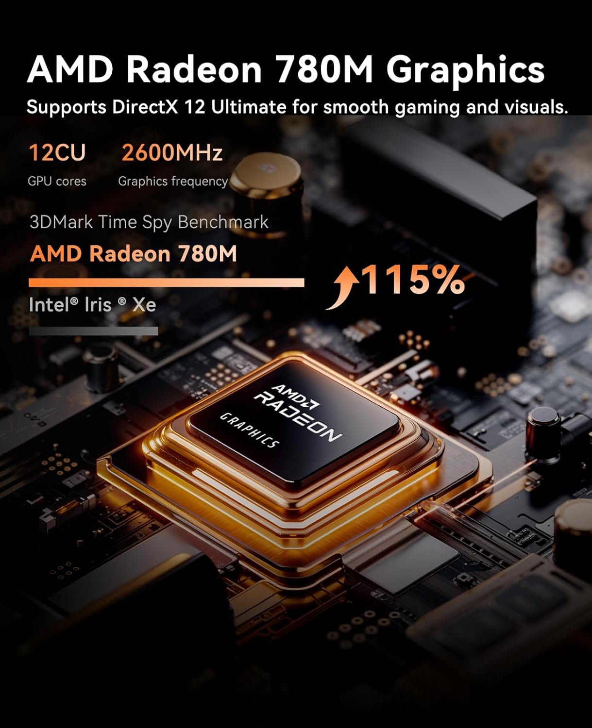 • 【Мощна интегрирана графика】Разполага с интегрирана графична карта AMD Radeon 680M с 12 процесора и честота на ускорение на графичния процесор до 2,2 GHz, отговаряща на нуждите на повечето ежедневни приложения и прости игри. Той се отличава с отлични възможности за графична обработка, което ви позволява да играете обикновени онлайн игри и лесно да редактирате видеоклипове за сравнително плавно изживяване.