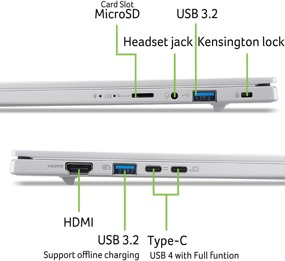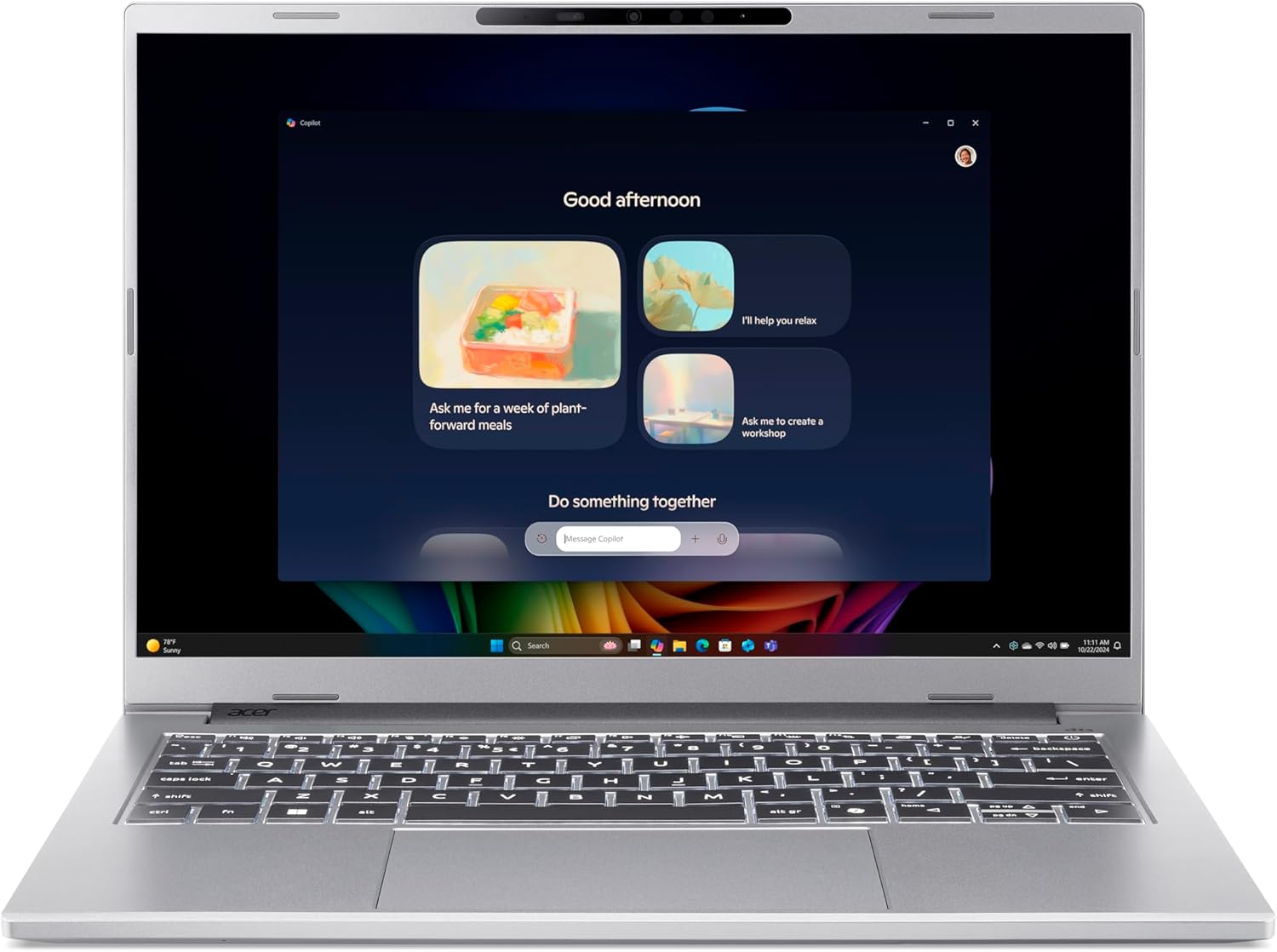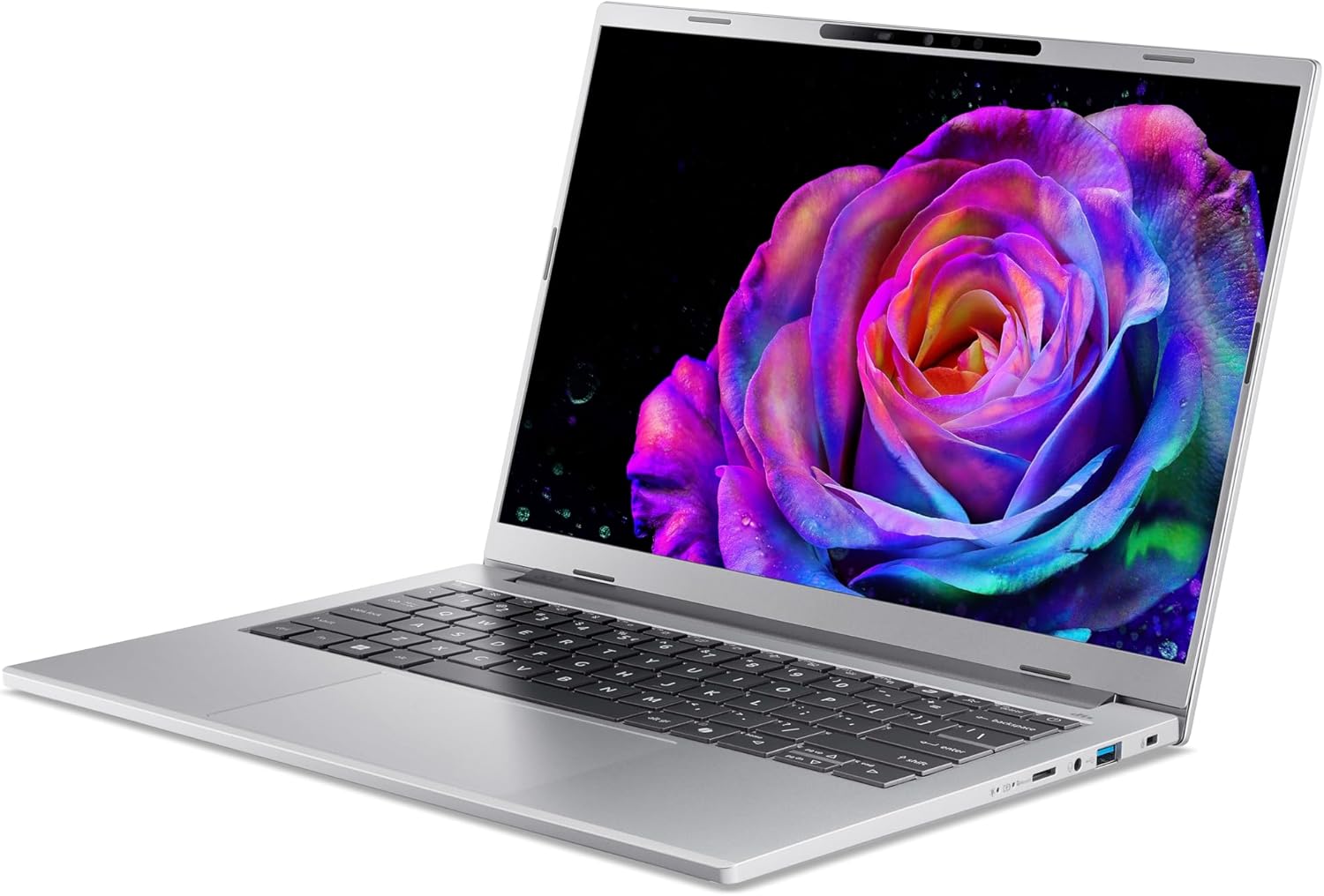 Acer Aspire 14 AI OLED (A14-61M-R8SZ) AI лаптоп, Copilot+ компютър, 14-инчов WUXGA OLED дисплей, AMD Ryzen Al 7 350, 32 GB RAM, 1 TB SSD, AMD Radeon 860M, Windows 11, QWERTZ клавиатура, сребрист