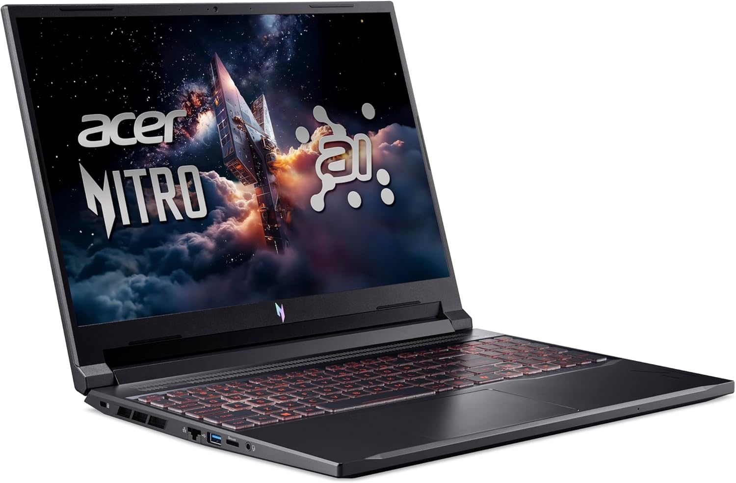 Acer Nitro V 16 AI (ANV16-42-R96W) геймърски лаптоп с 16 инча, 16-инчов WUXGA IPS 180Hz дисплей, AMD Ryzen 7 260, 16 GB RAM, 1 TB SSD, NVIDIA GeForce RTX 5070, Windows 11, QWERTZ клавиатура, черен