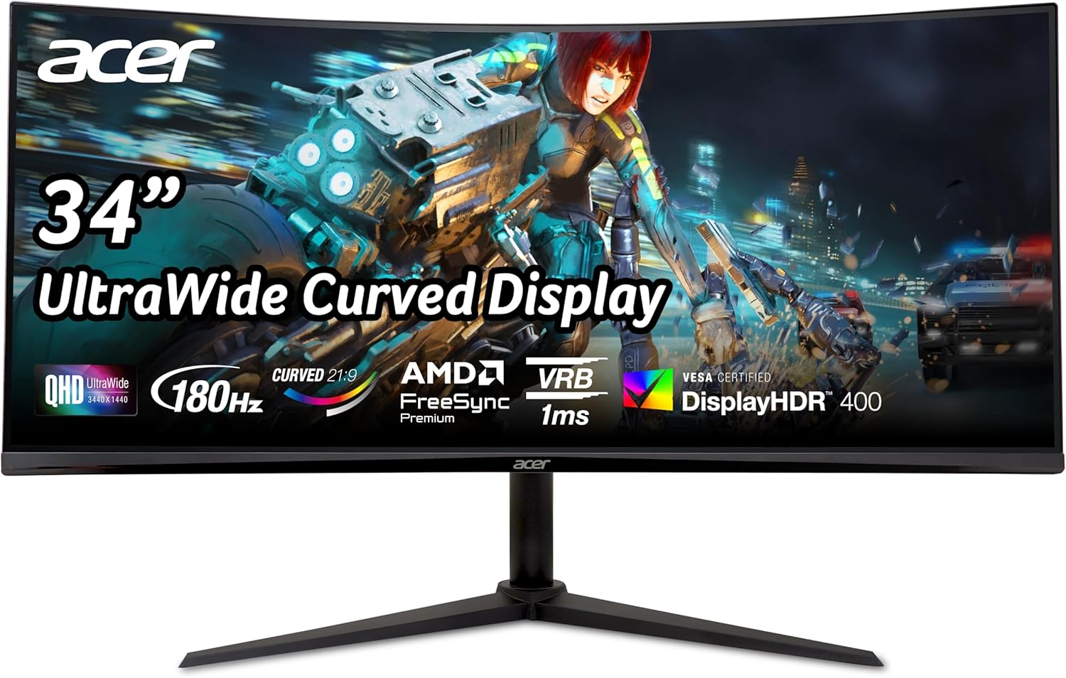 • Набор от функции: 21:9 геймърски монитор с резолюция 3440 x 1440 dpi, VA извит дисплей с LED подсветка. Честота на възстановяване: 180 Hz DP, 100 Hz HDMI, HDR400, време за реакция: 4 ms (GTG), 1 ms (VRB), връзки: 2 x HDMI 2.0, DP 1.4. Аудио изход, 2wx2 високоговорителя, стенен монтаж 100 x 100
