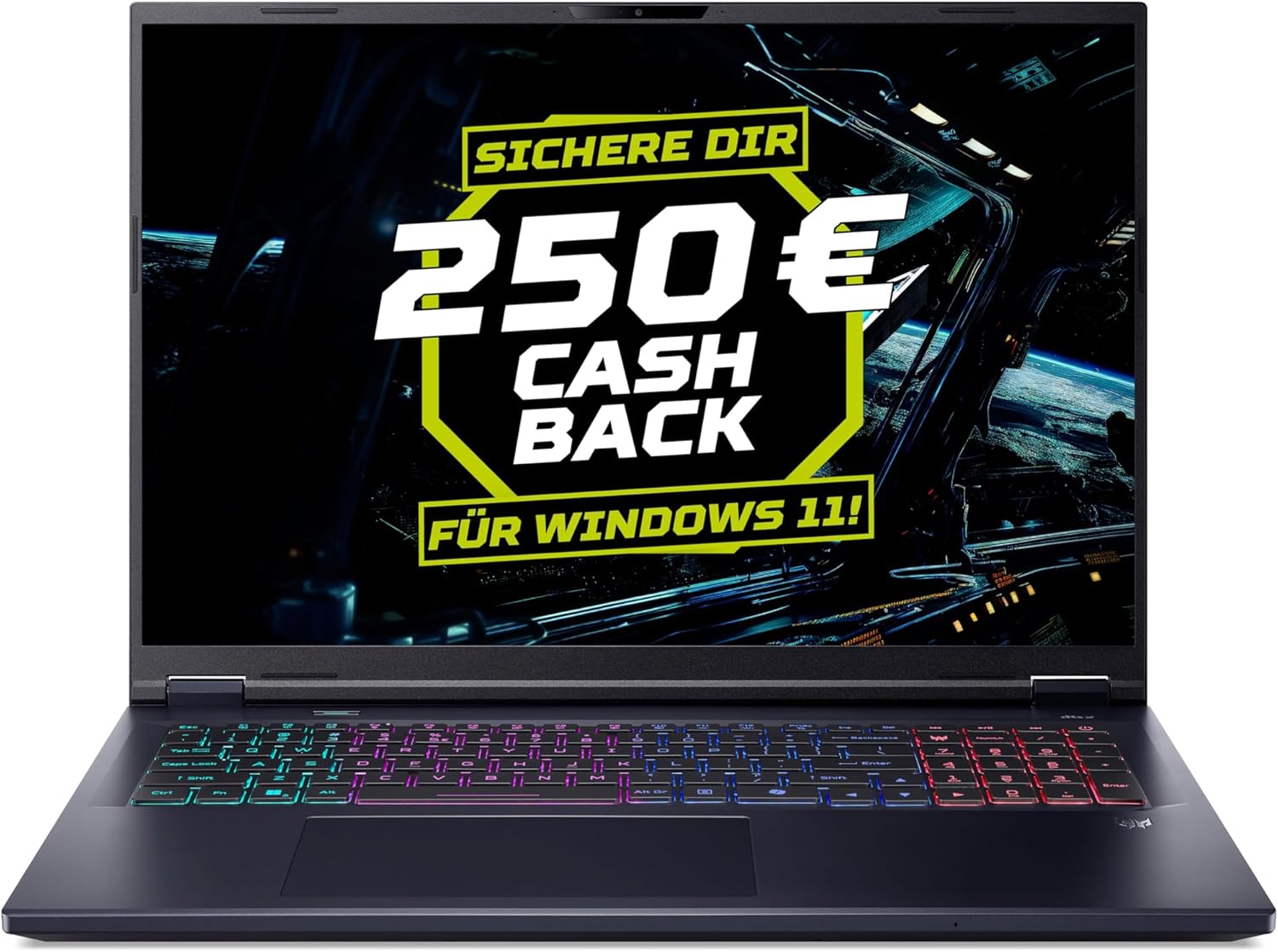 • ПАКЕТЪТ ВКЛЮЧВА: Acer Predator Helios Neo 18 AI, 230W захранване с 50% PCR пластмаса КЛАВИАТУРА: с подсветка (RGB), цифрова клавиатура, QWERTZ подредба | ТЪЧПАД