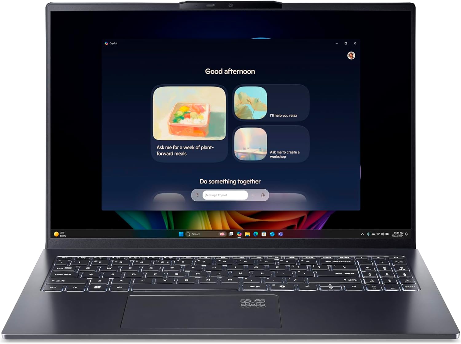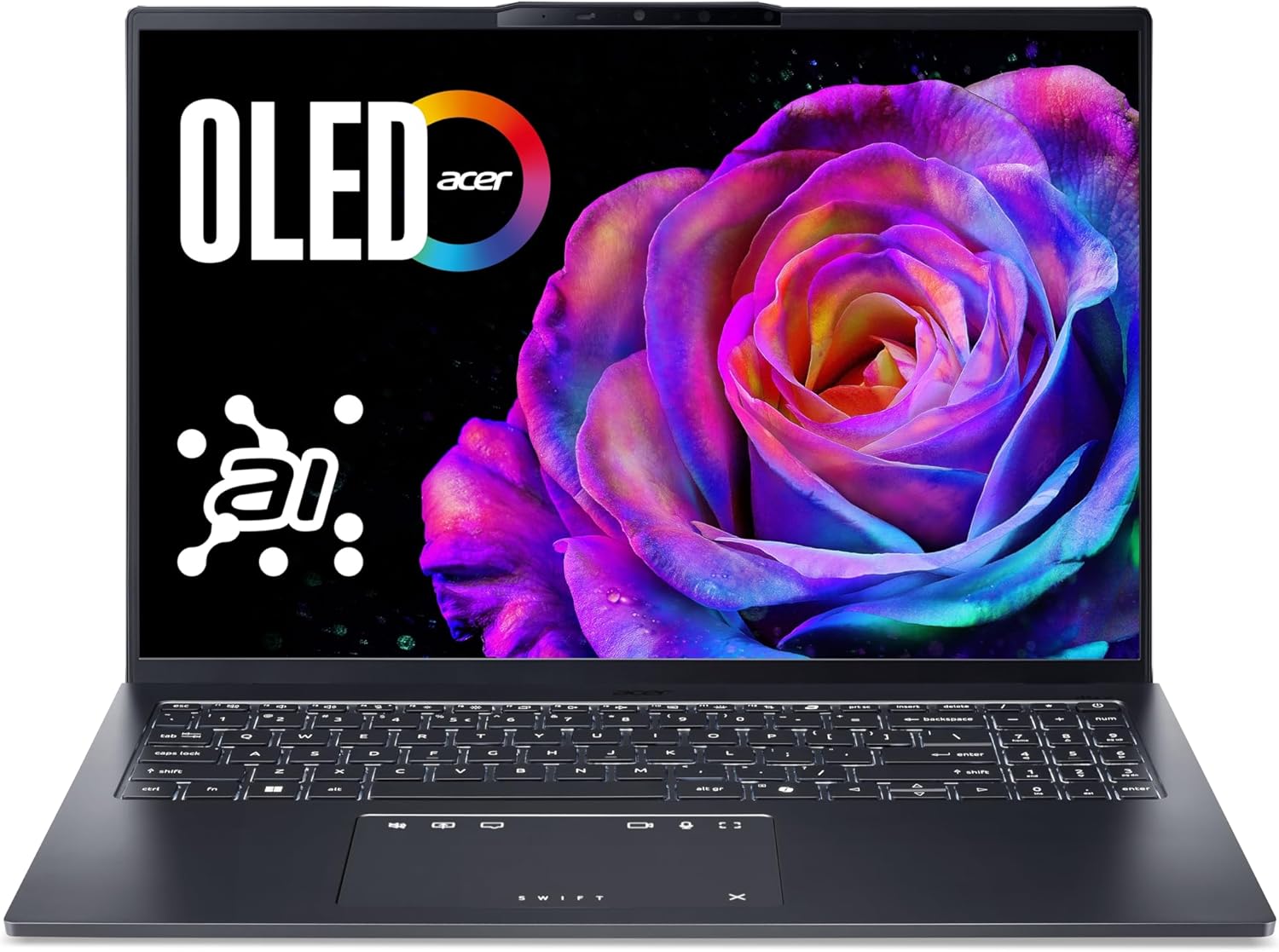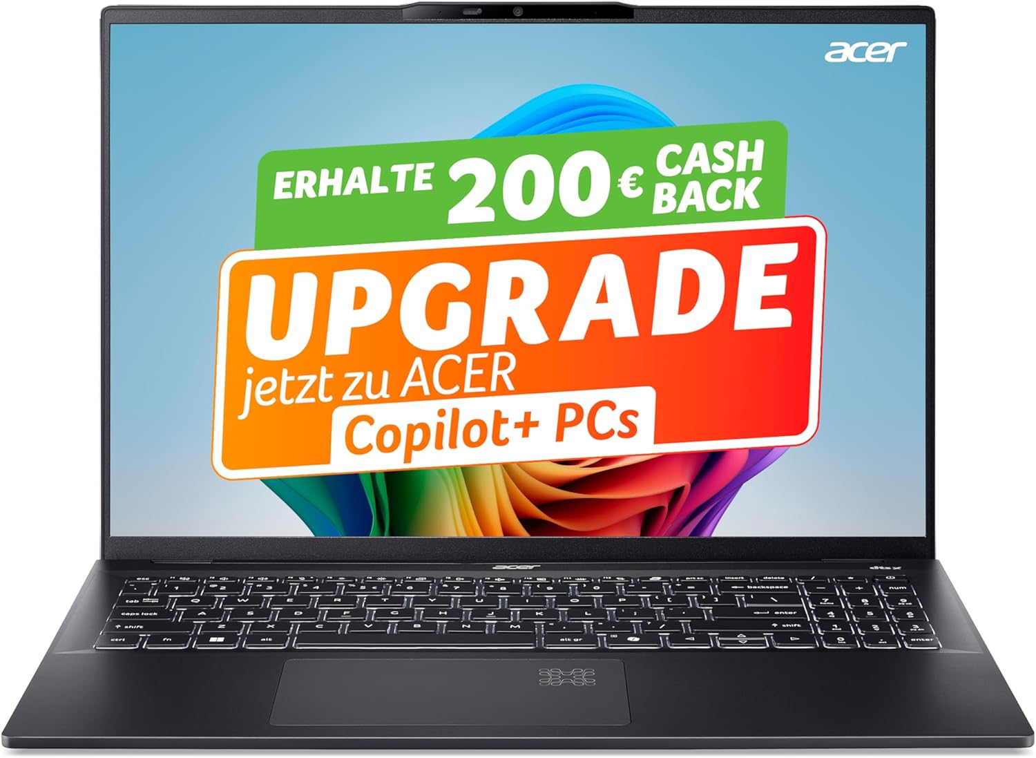 Acer Swift Go 16 AI OLED (SFG16-61-R5CB) AI лаптоп, Copilot+ компютър, 16-инчов WUXGA+ OLED 120Hz дисплей, AMD Ryzen Al 7 350, 32 GB RAM, 1 TB SSD, AMD Radeon 860M, Windows 11, QWERTZ клавиатура, сив