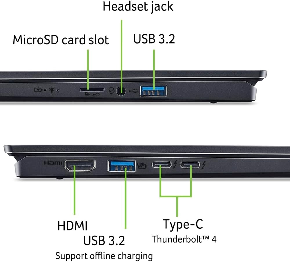 • ВРЪЗКИ: 1x HDMI, DisplayPort чрез USB Type-C, 2x Thunderbolt 4 чрез USB Type-C, 2x USB 4.0 Type-C, 2x USB 3.2 USB Type-A Gen.1 (1x с USB зареждане при изключване), Четец на карти, 1x Аудио жак, БЕЗЖИЧНА ВРЪЗКА: Bluetooth 5.3, WLAN