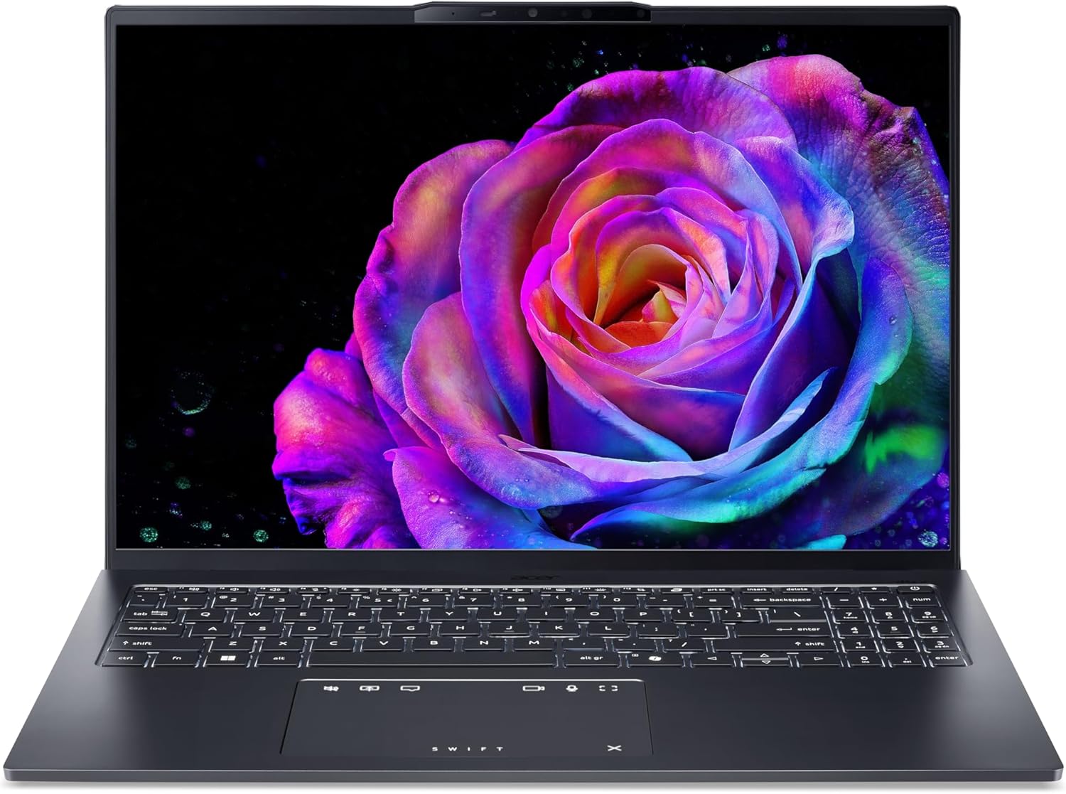 • ОБХВАТ НА ДОСТАВКАТА: Acer Swift Go 16 OLED, захранващ адаптер КЛАВИАТУРА: подсветка, цифрова клавиатура, QWERTZ подредба | ТЪЧПАД | СЕНЗОР ЗА ПРЪСТОВИ ОТПЕЧАТЪЦИ