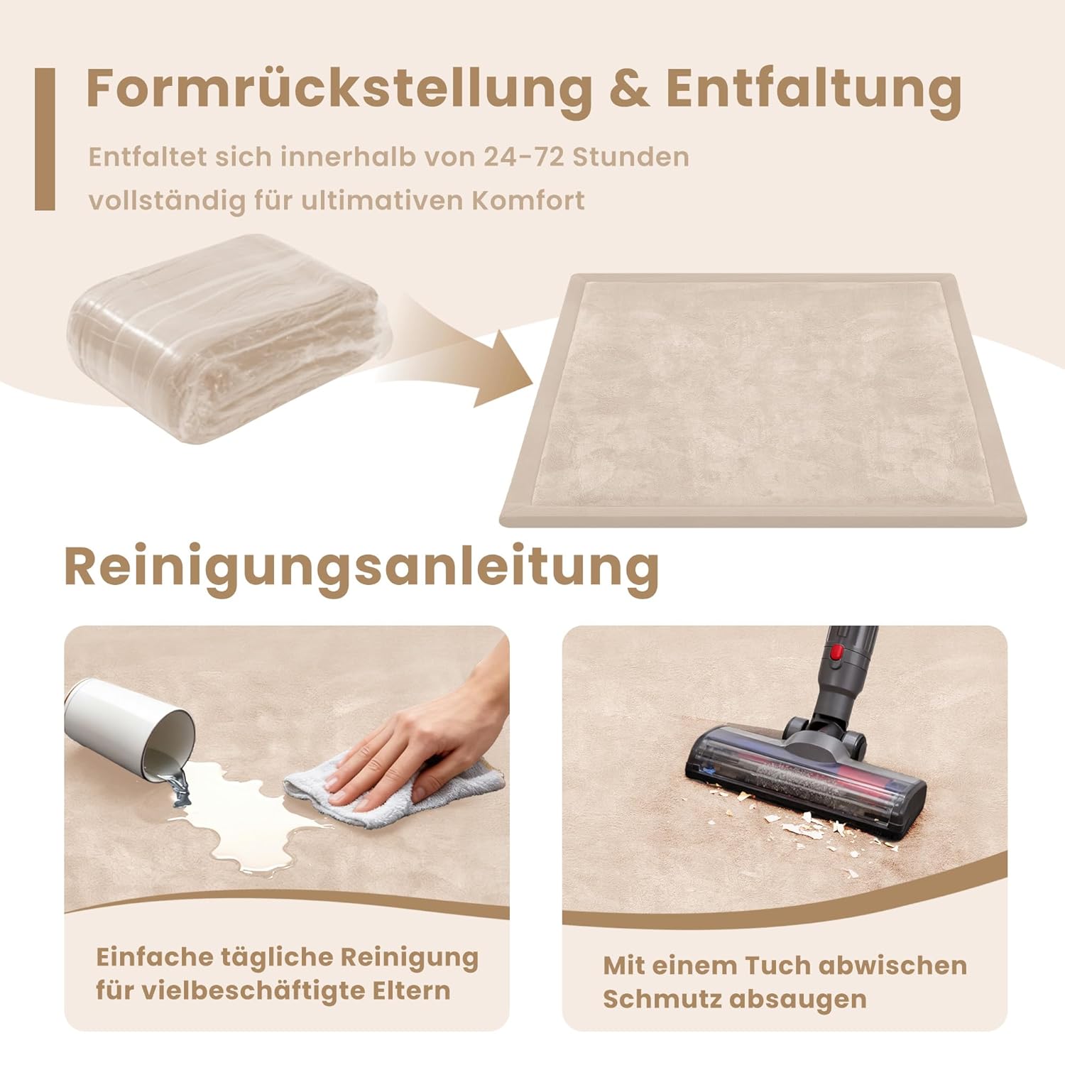 ACOMOPACK Бебешка постелка за пълнеж 150x200x3.5 см Голяма постелка за игра с пълнеж от пяна Неплъзгаща се долна страна Мек килим за детски стаи и кошари Беж