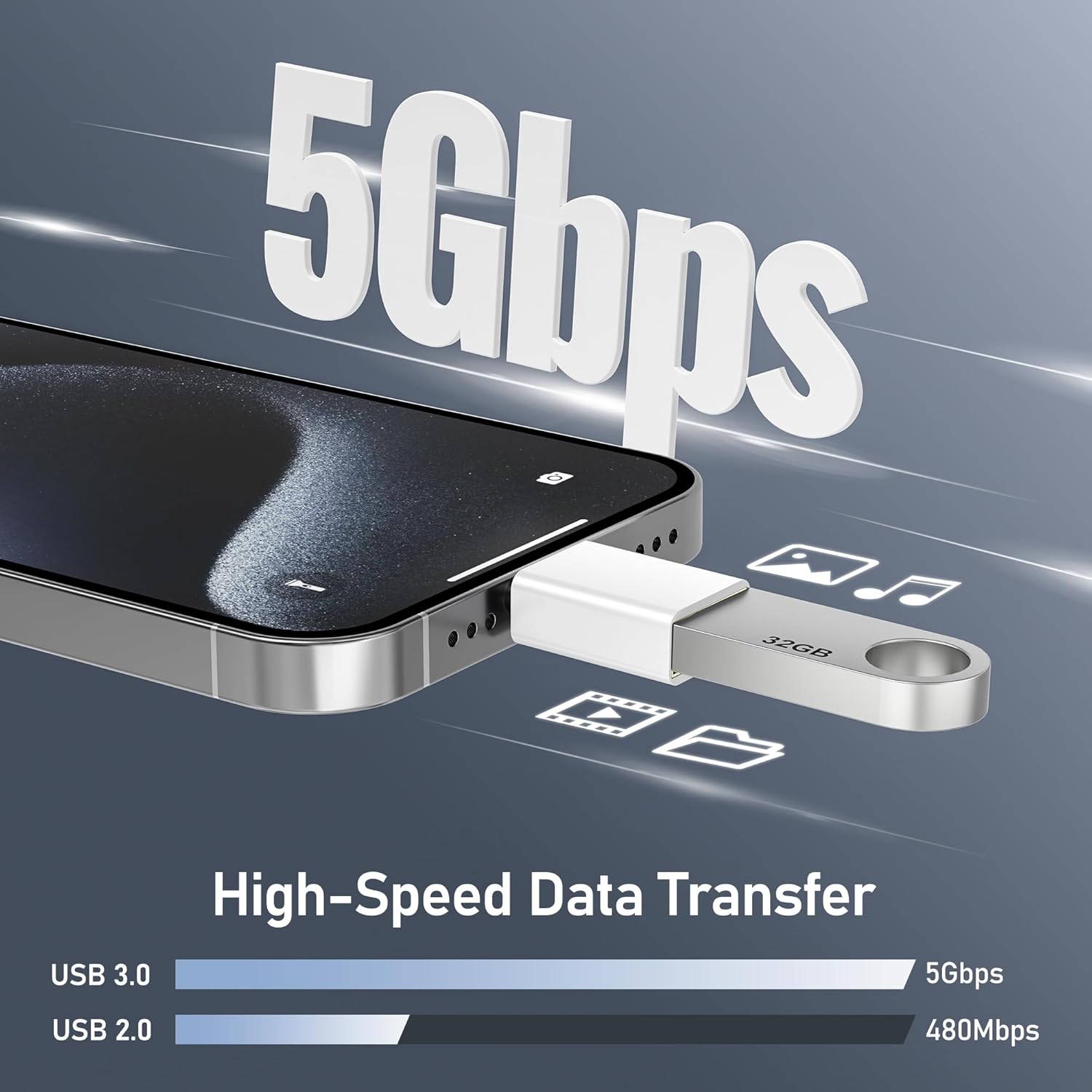 Адаптер Basesailor за MacBook, USB C към USB конвертор, Thunderbolt 4/5 OTG адаптер за iPhone 17/16/15, iMac, iPad Pro, Air 5/4, Microsoft Surface, Samsung Galaxy Tab S10, S9, S24, S25, Z Flip, Fold