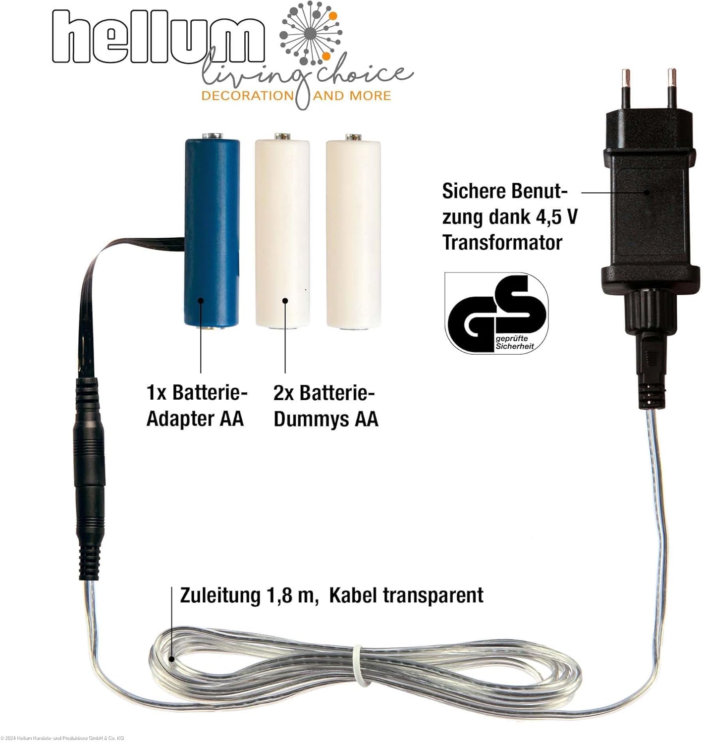 Адаптер за батерии Hellum, 4.5 V захранващ адаптер, резервна батерия за AA x 3 батерии, AA x 3 батерии за манекени, резервно захранване с 1.8 м кабел за светлинна декорация, работеща с батерии