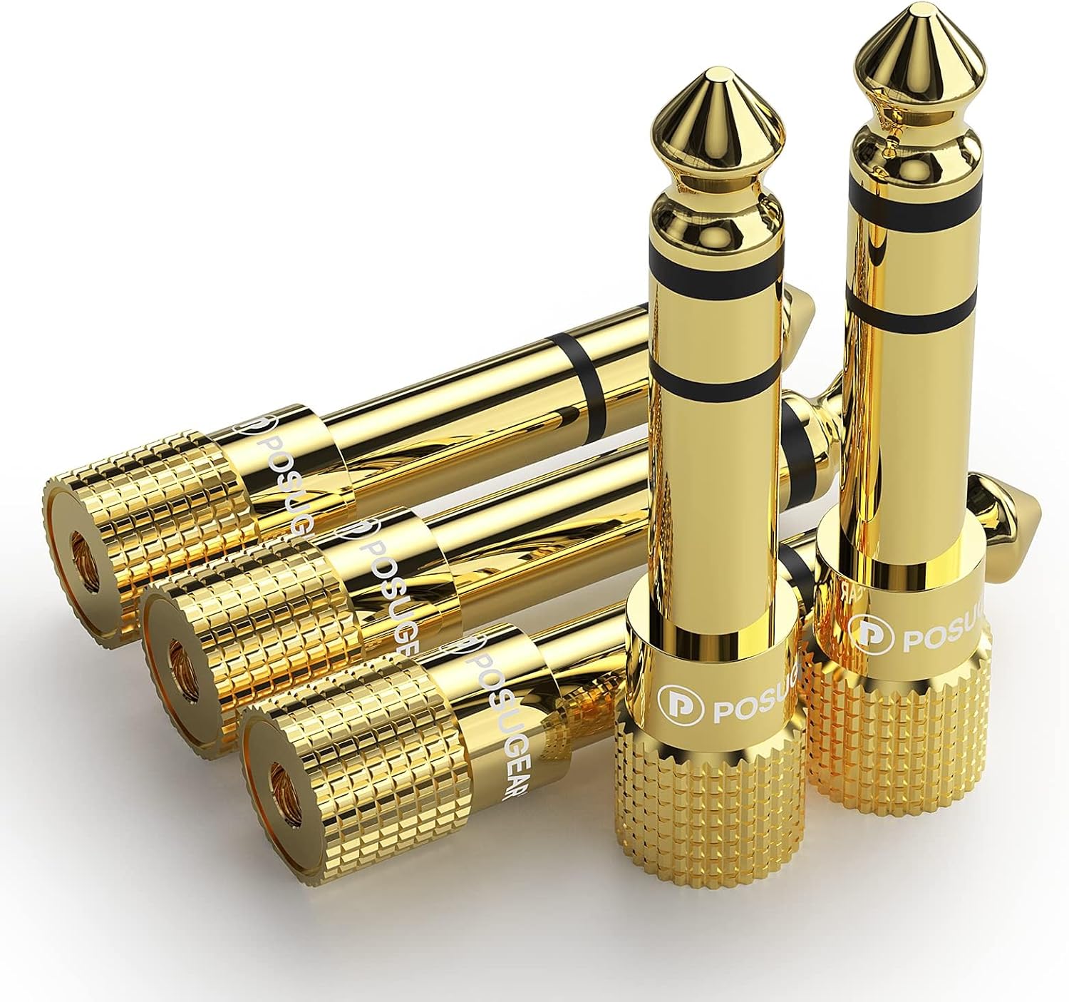 Адаптер за жак POSUGEAR 3,5 мм към 6,35 мм, адаптер за жак 6,3 към 3,5 мм (опаковка от 5), адаптер за жак, AUX аудио гнездо с позлатени контакти за слушалки или високоговорители и др.