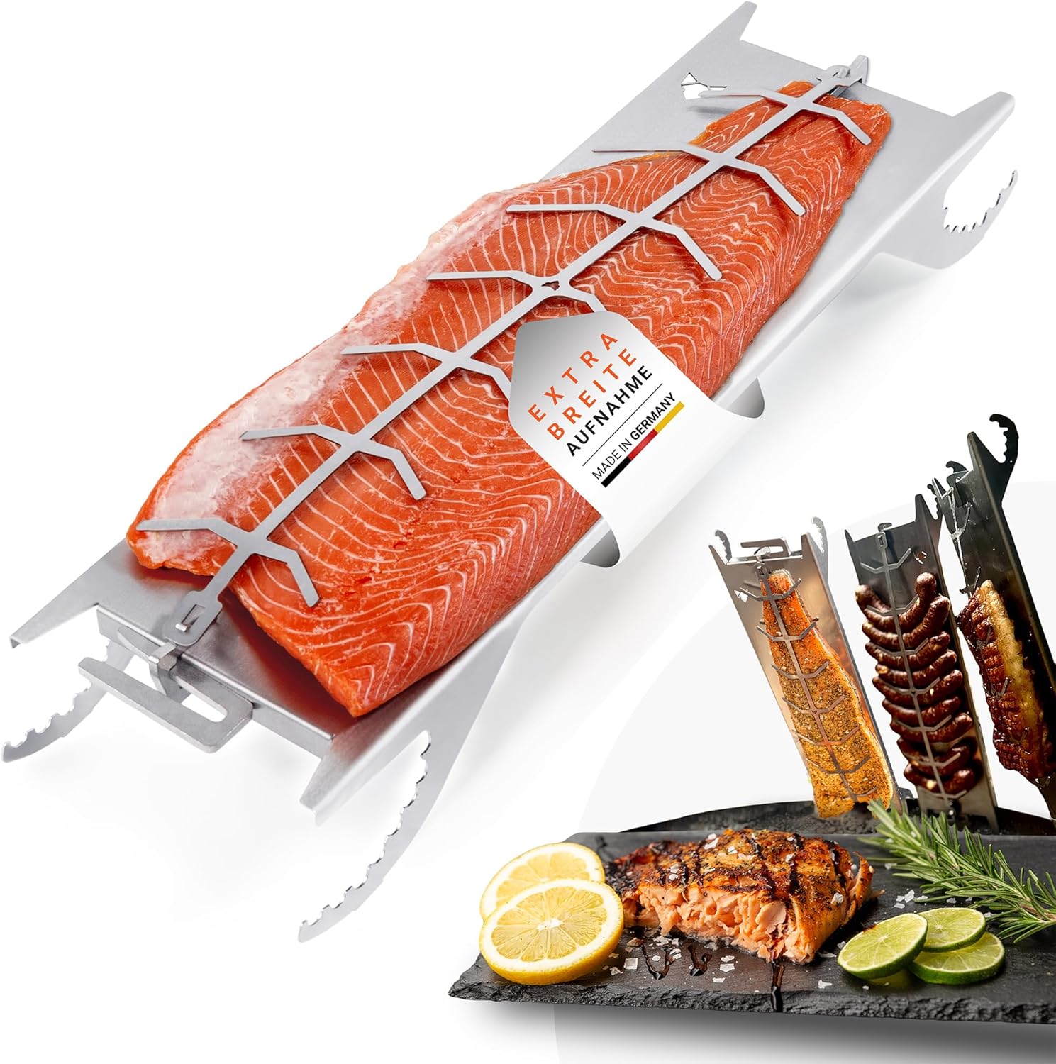 • Универсален: Идеален за риби като шаран, сьомга, пъстърва и много други. Но месо като стекове или дори пилешко барбекю също може лесно да се приготви. Цялата поставка е подходяща за съдомиялна машина и след това може лесно да се почисти.