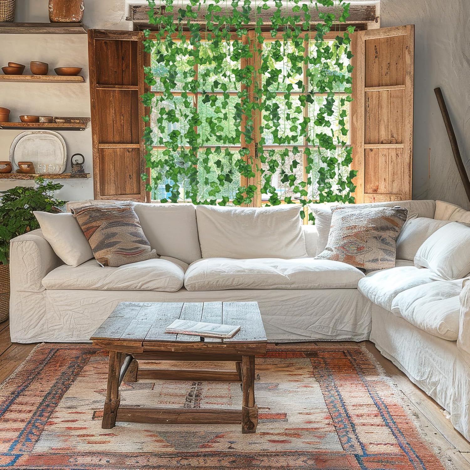 • ИЗДРЪЖЛИВИ Изработени от висококачествена коприна и PVC материал, гирляндите от изкуствен бръшлян са издръжливи и могат да издържат на изпитанието на времето. Те няма да увехнат или избледнеят дори след продължителна употреба.