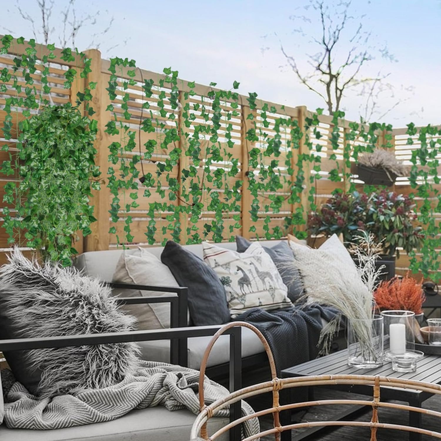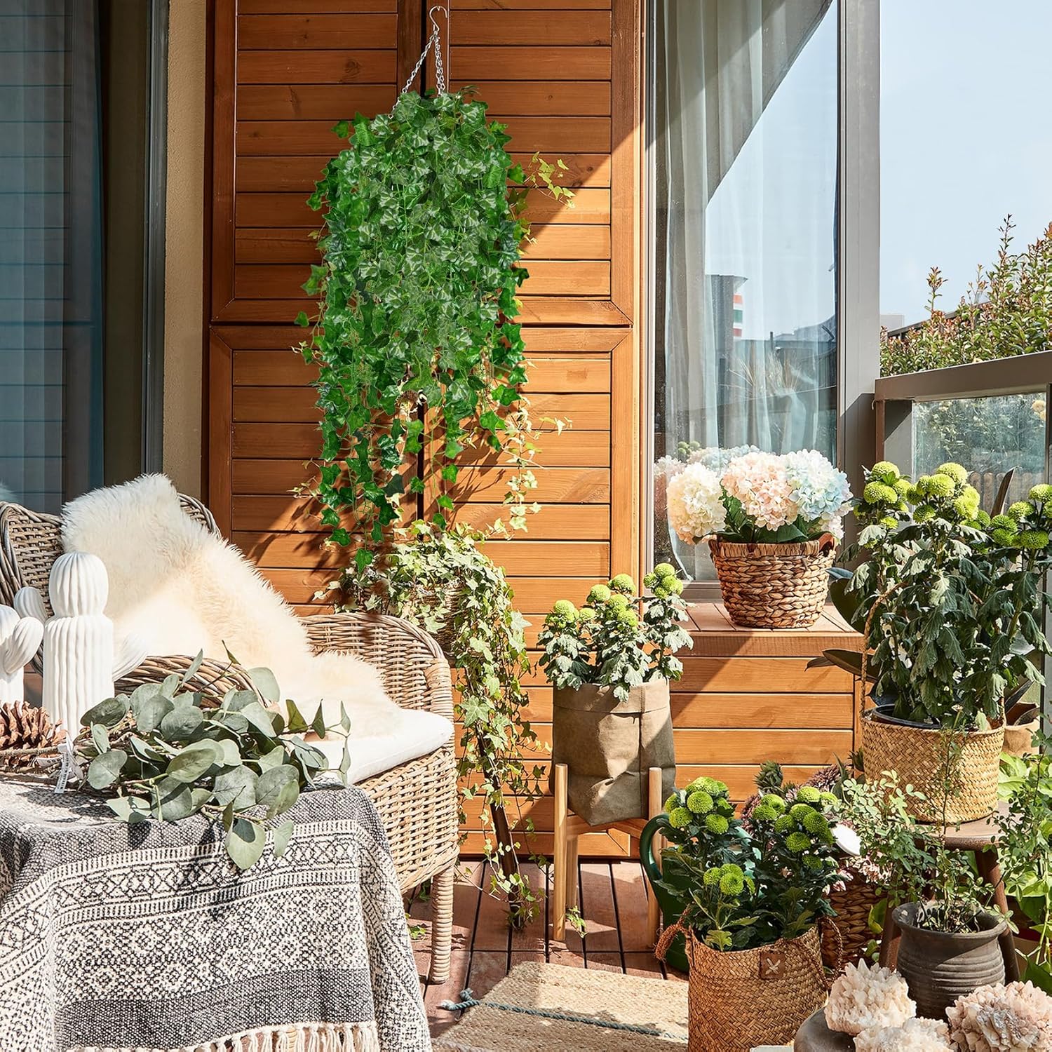 • МНОГОФУНКЦИОНАЛНИ Гирляндите от изкуствен бръшлян могат да се използват както на закрито, така и на открито. Можете да ги окачите на стена, ограда, балкон или градина, както желаете.
