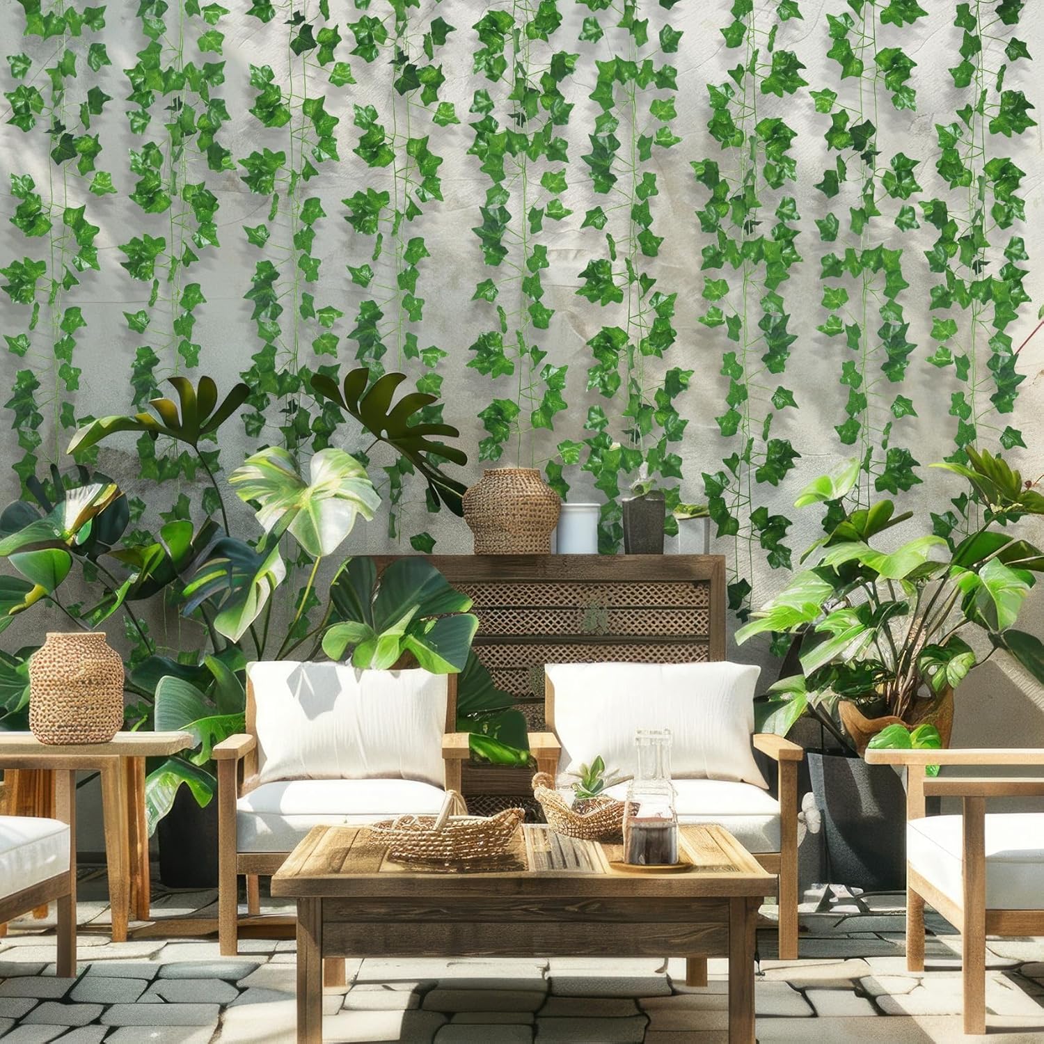 • ИЗГОДНО Изкуствените гирлянди от бръшлян са рентабилен начин да добавите зеленина към пространството си, без да се налага да купувате и поддържате истински растения. Можете да ги използвате многократно, което ви спестява пари в дългосрочен план.