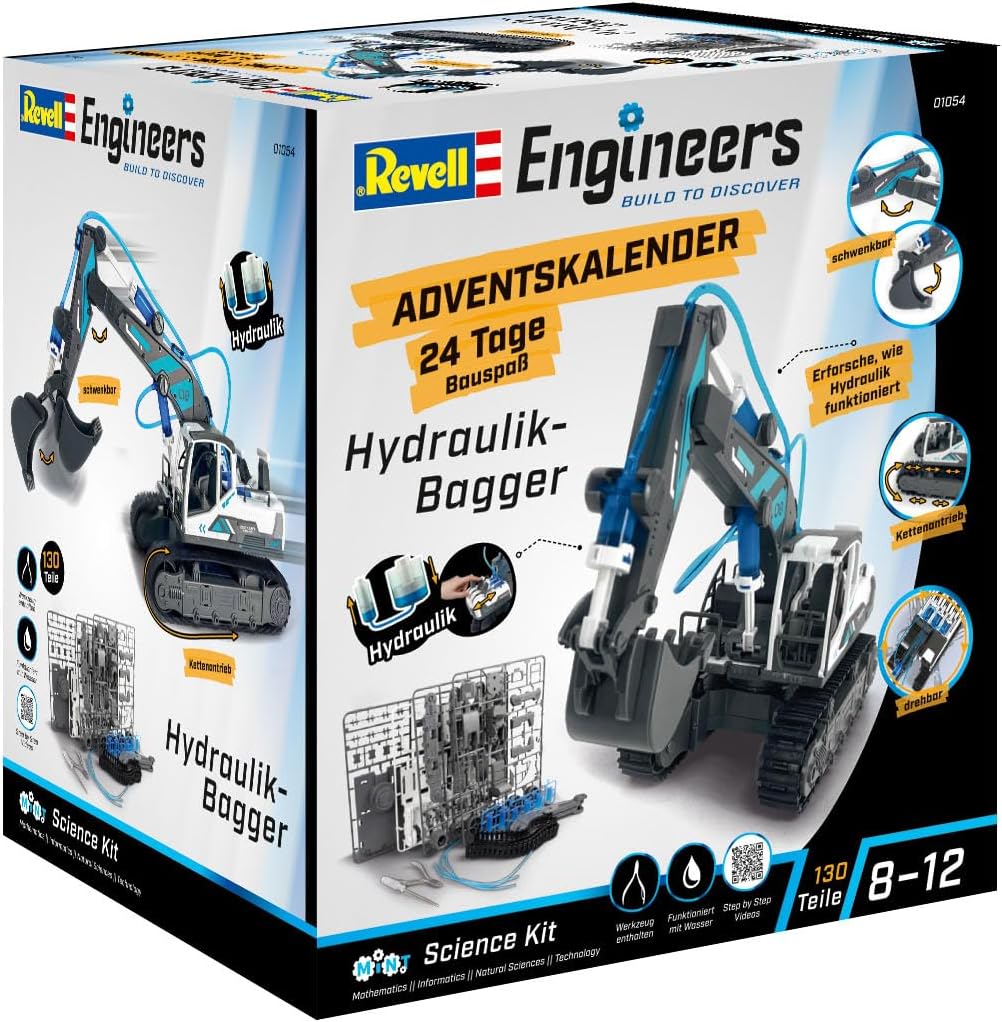 Der Adventskalender Ingenieure "Hydraulikbagger" ist mehr als nur ein Spielzeug - er ist eine lehrreiche Einführung in die Welt der Technik. Hydraulik ist eine der grundlegendsten Technologien in der modernen Maschinenwelt, die den Flüssigkeitsdruck verwendet, um Bewegungen in einer Vielzahl von Geräten zu steuern, vom Bagger bis zum Flugzeug. Mit diesem Adventskalender können Kinder das Prinzip der Hydraulik direkt erleben und verstehen, wie mechanische Systeme in der realen Welt funktionieren. Revell, bekannt für seine hochwertigen Modellbausätze, bietet mit diesem Adventskalender eine Kombination aus Spaß, Lernen und kreativer Selbstverwirklichung - ideal für junge Technik-Fans, die sich für Mechanik und Technik begeistern.