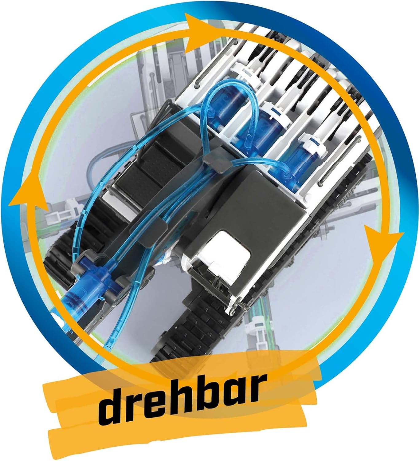 Realistisches Design: Hochdetaillierte Teile sorgen für einen authentischen Look und machen den Bagger zu einem echten Hingucker.Innovative Hydraulik: Sehen Sie aus erster Hand, wie der Flüssigkeitsdruck verwendet wird, um mechanische Bewegungen wie das Heben und Senken des Baggerarms zu steuern. Mechanischer Kettenantrieb: Ein voll funktionsfähiger Kettenantrieb verleiht dem Modell noch mehr Realismus und sorgt für faszinierende Bewegungen.Pädagogischer Wert: Fördert Feinmotorik, Konzentration, räumliches Denken und weckt Interesse an Technik und Technik.